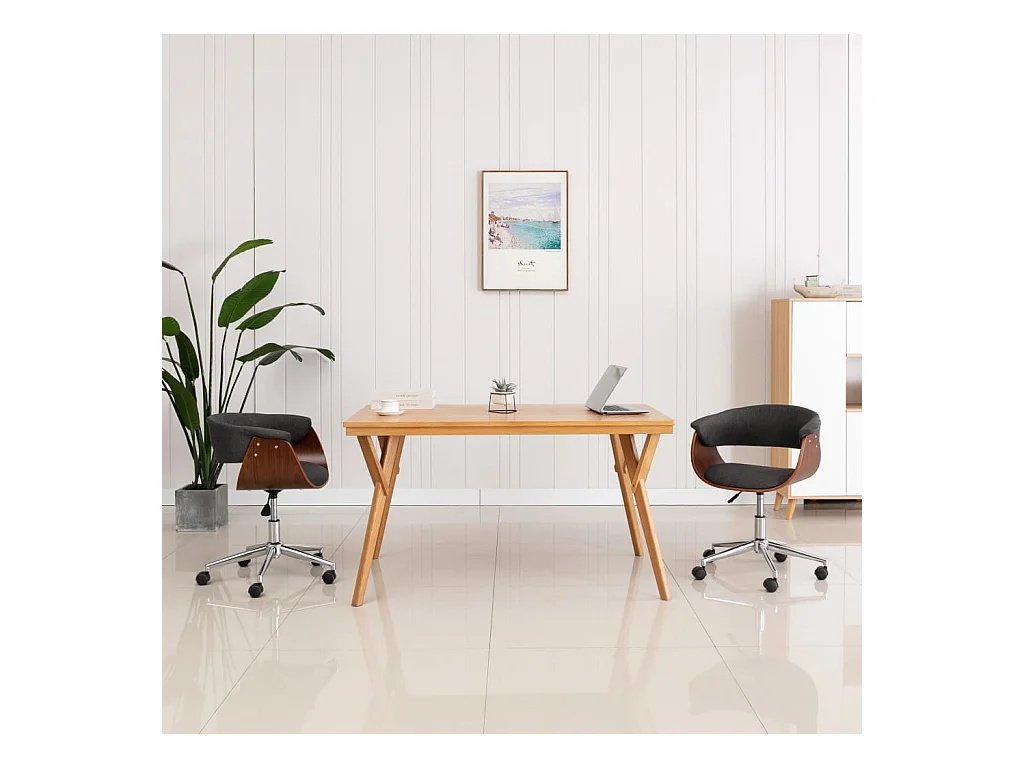 Draaibare eetkamerstoel Grijs gebogen hout en stof