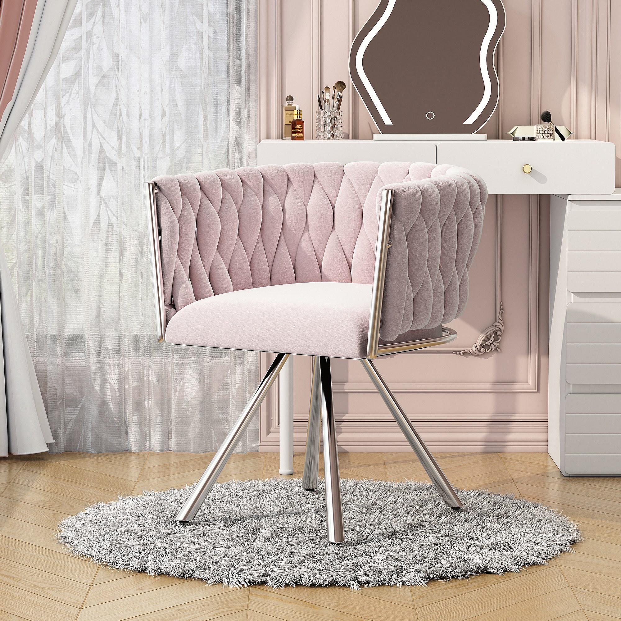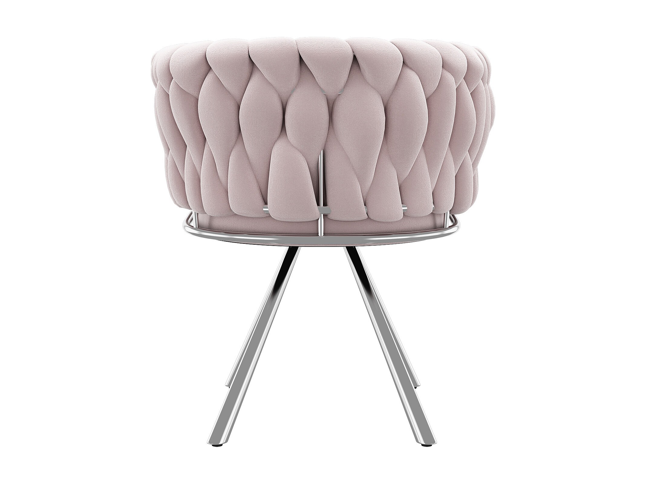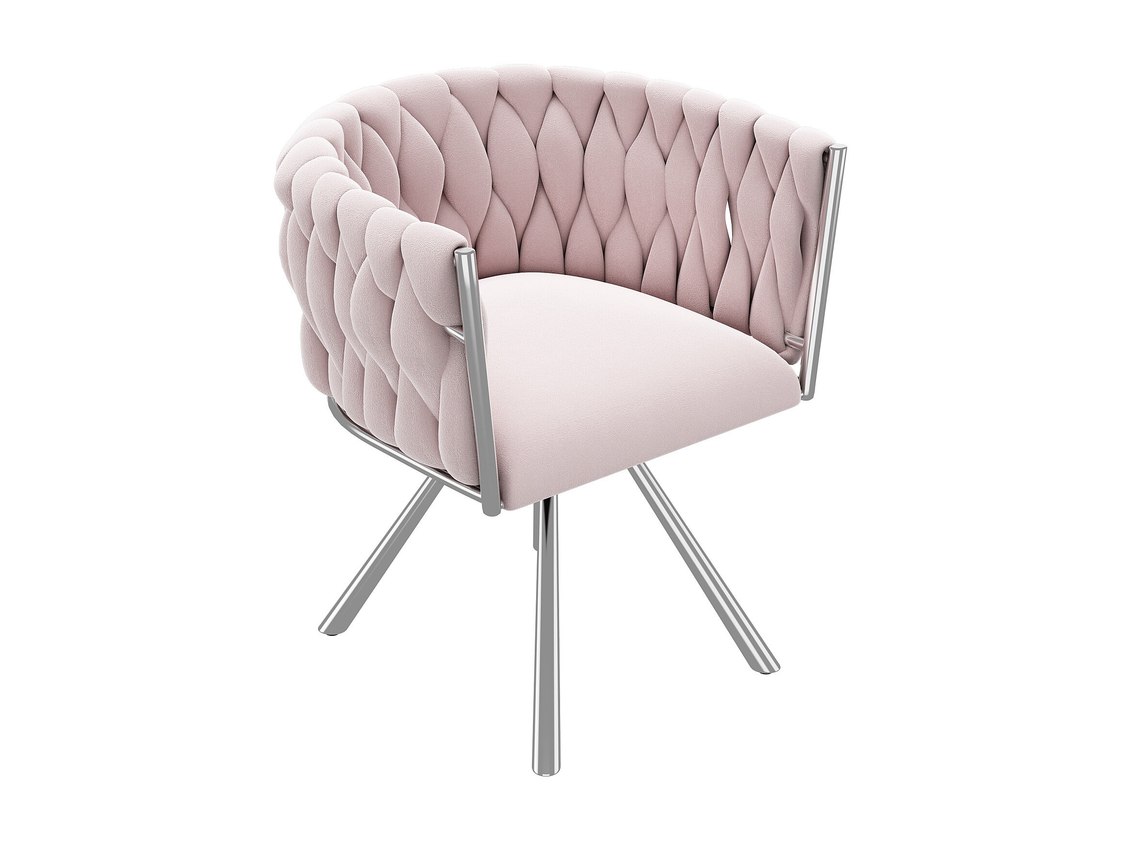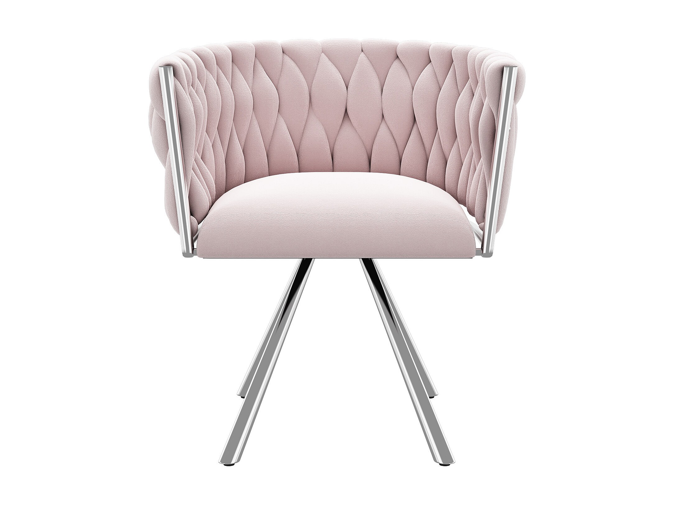 Draaibare eetkamerstoelen met armleuningen en rugleuning - zilveren metalen poten - roze fluweel