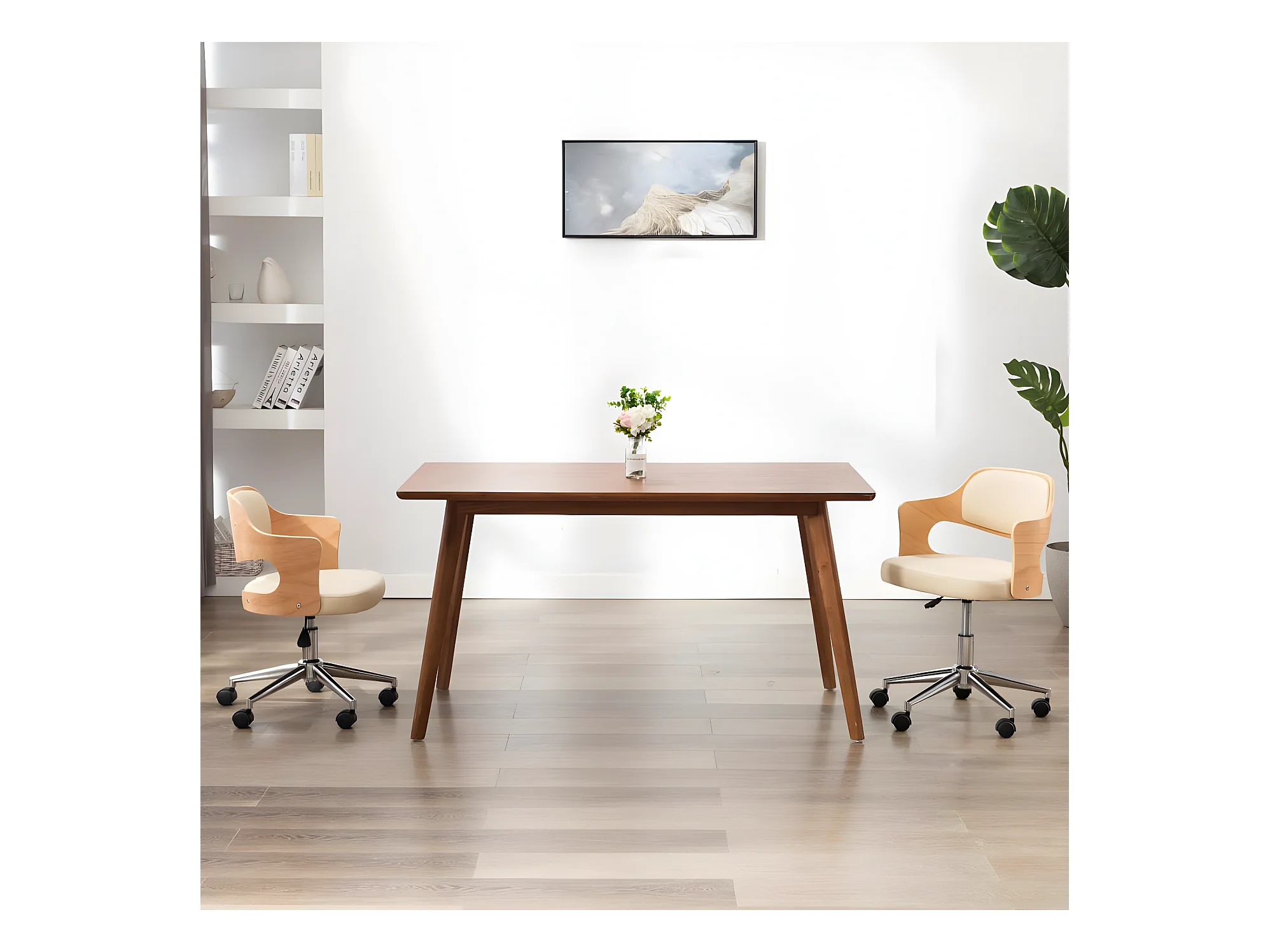 Draaibare eetkamerstoelen set van 2 gebogen hout en kunstleer