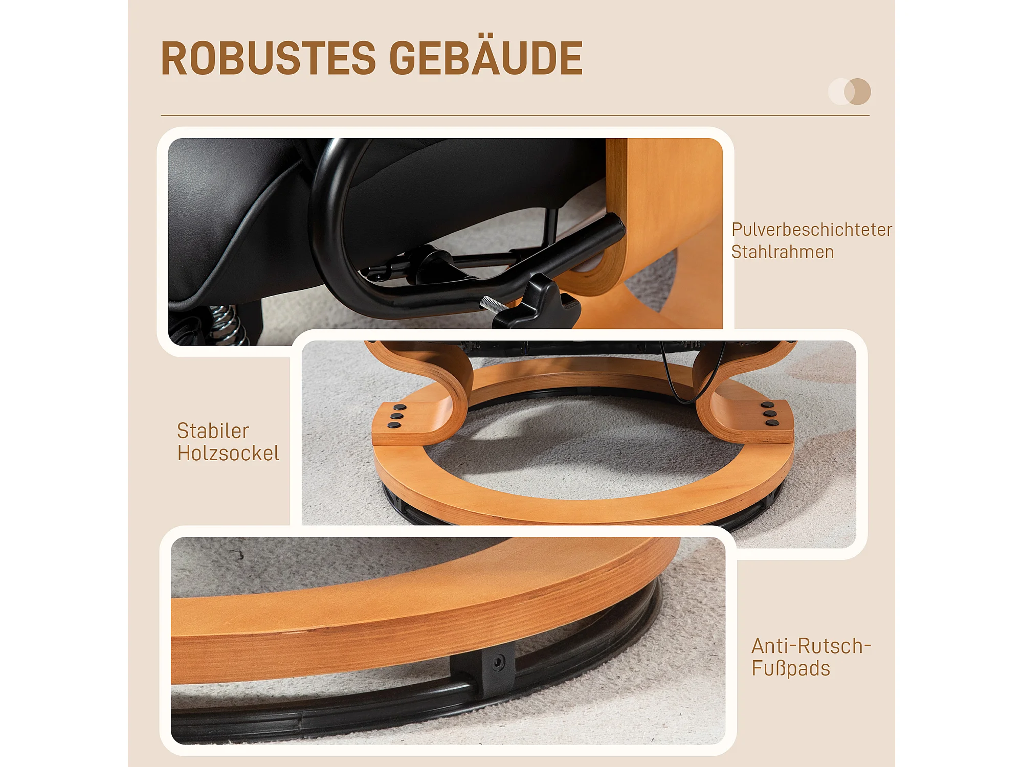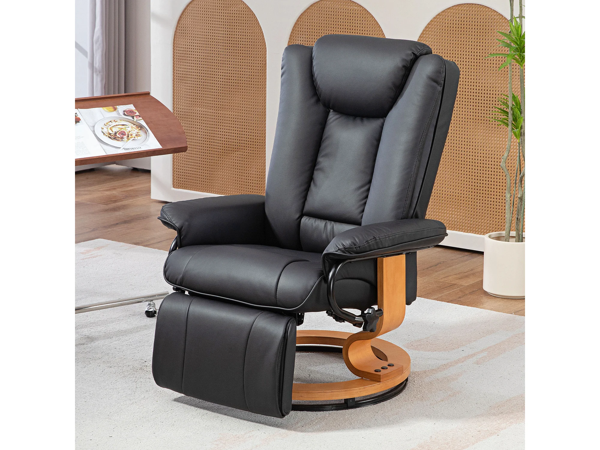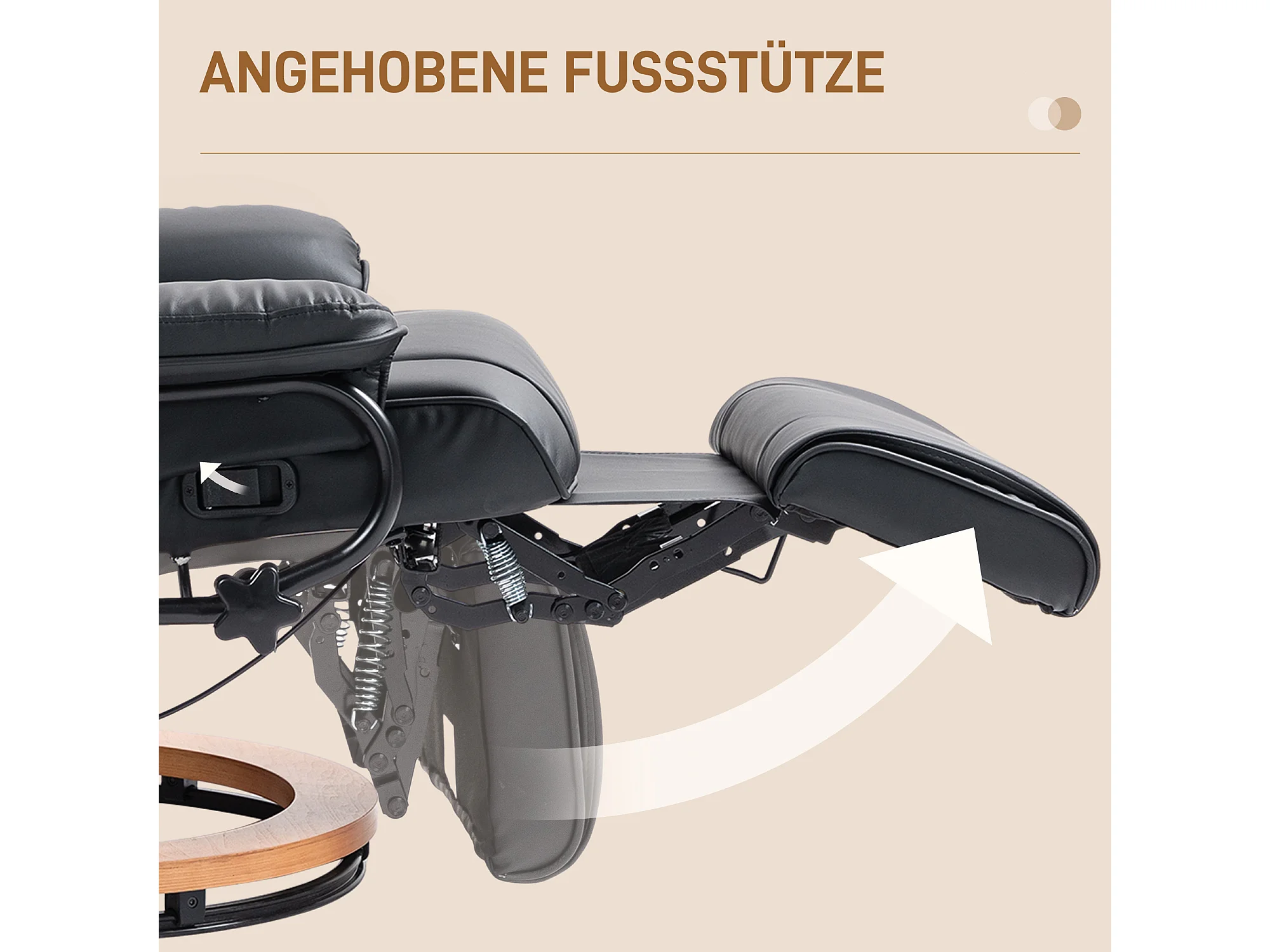 Draaibare relaxfauteuil met relaxfunctie, voetenbank, kunstleer, zwart (78x88x103 cm)