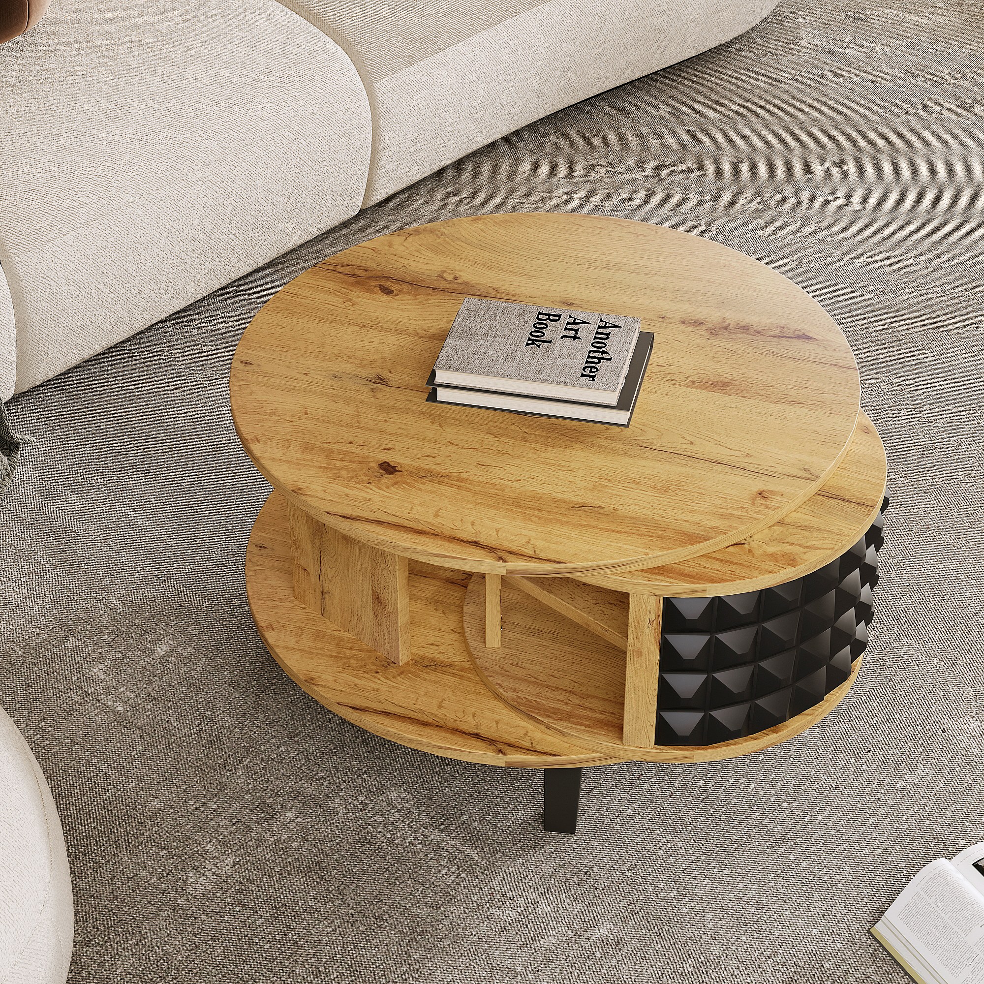 Draaibare salontafel met verborgen opbergruimte, spaanplaat, natuurlijke kleur (85,2x80x45,2 cm)