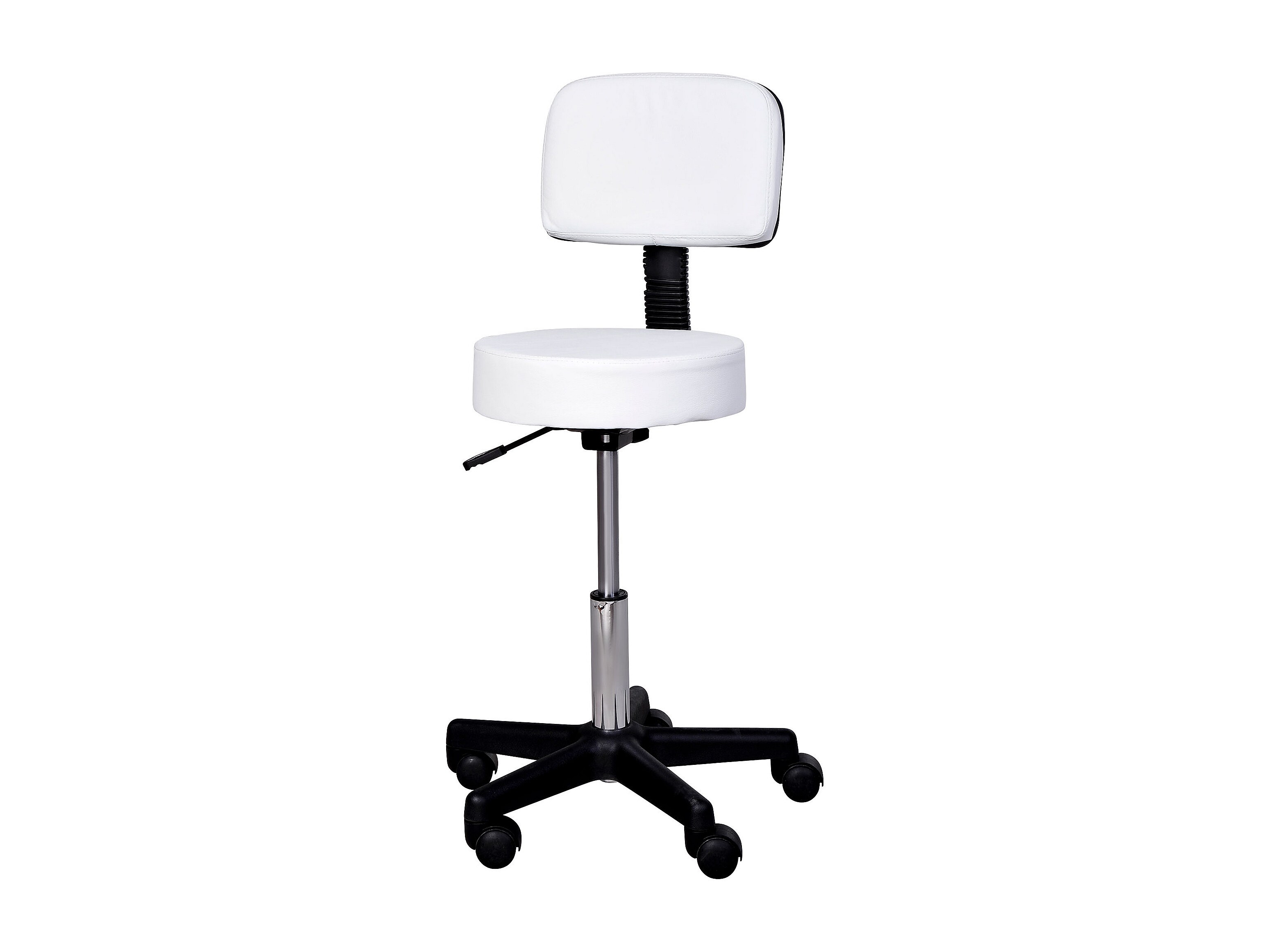 Draaibare werkkruk met rugleuning en wielen, in hoogte verstelbaar, voor op kantoor, praktische en comfortabele zitting, kleur wit