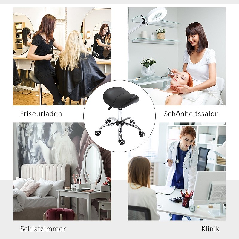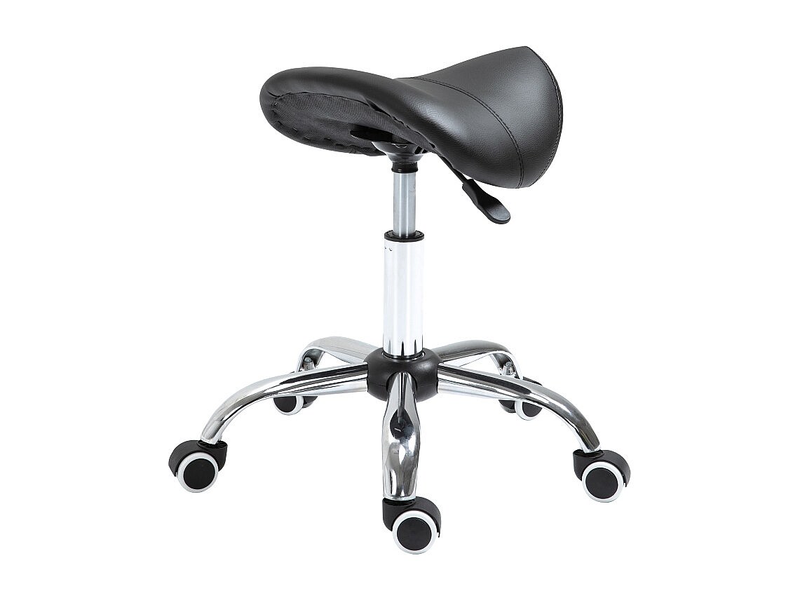 Draaibare zadelkruk, in hoogte verstelbaar en gewatteerd, zwarte kleur, ideaal voor schoonheidssalon of kantoor, comfortabel en praktisch