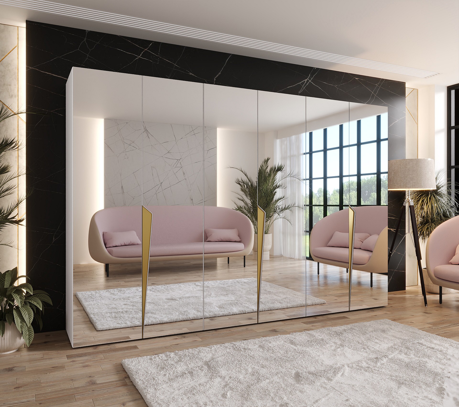 Draaideurkast Piano 3 300 (100x3) / 202 / 52 (Wit + Goud)