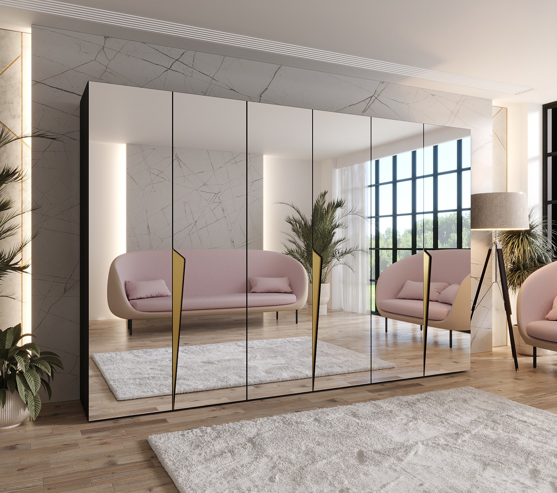 Draaideurkast Piano 3 300 (100x3) / 202 / 52 (Zwart + Goud)