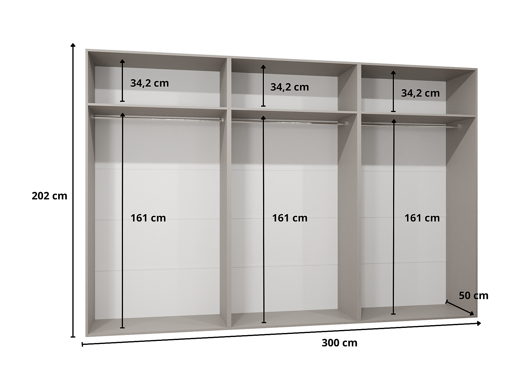 Draaideurkast Sandi 3 300 (100x3) / 202 / 52 (Kasjmier + handgrepen: Goud)
