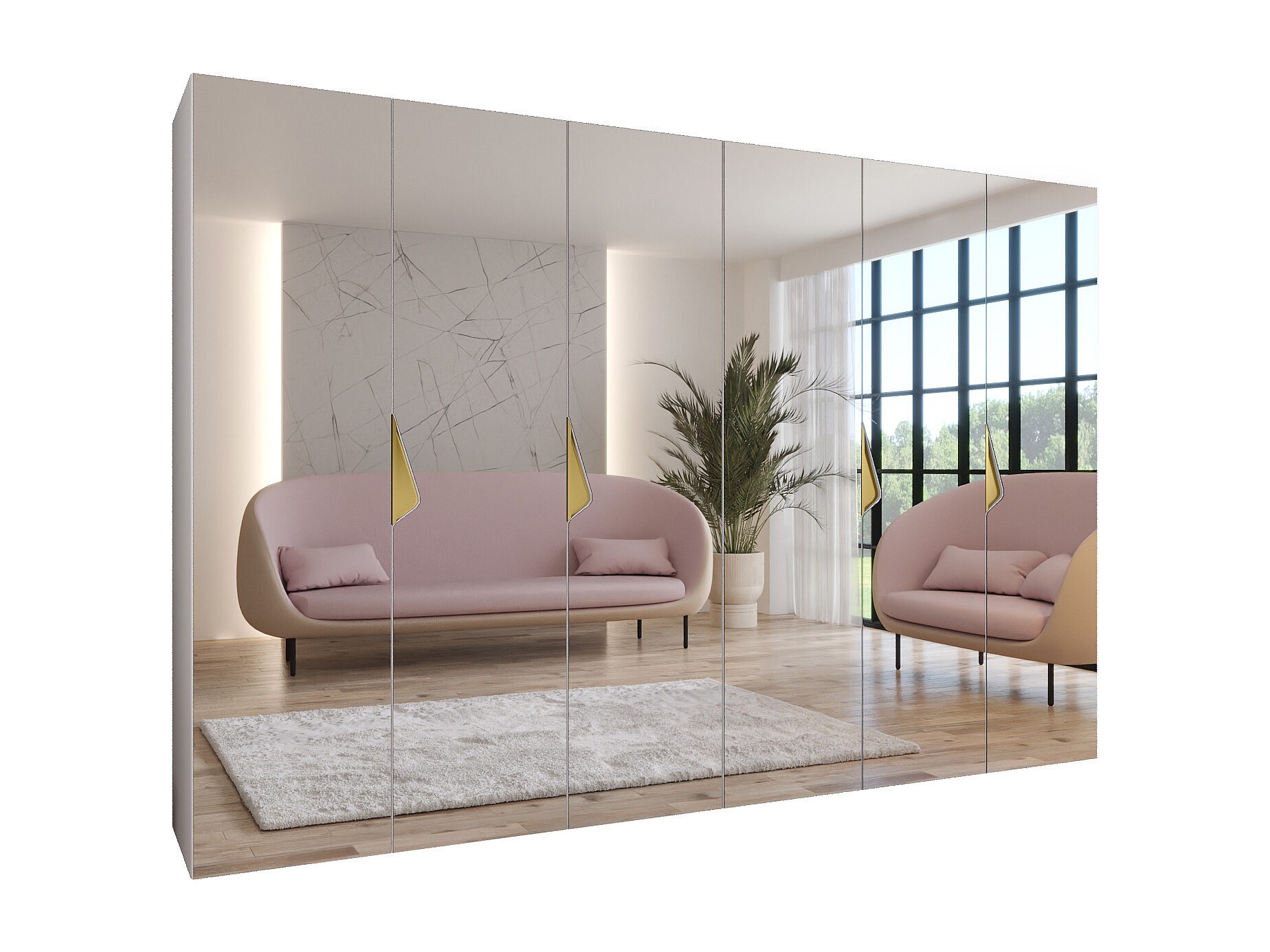 Draaideurkast Sandi 3 300 (150x2) / 202 / 52 (Wit + handgrepen: Goud)