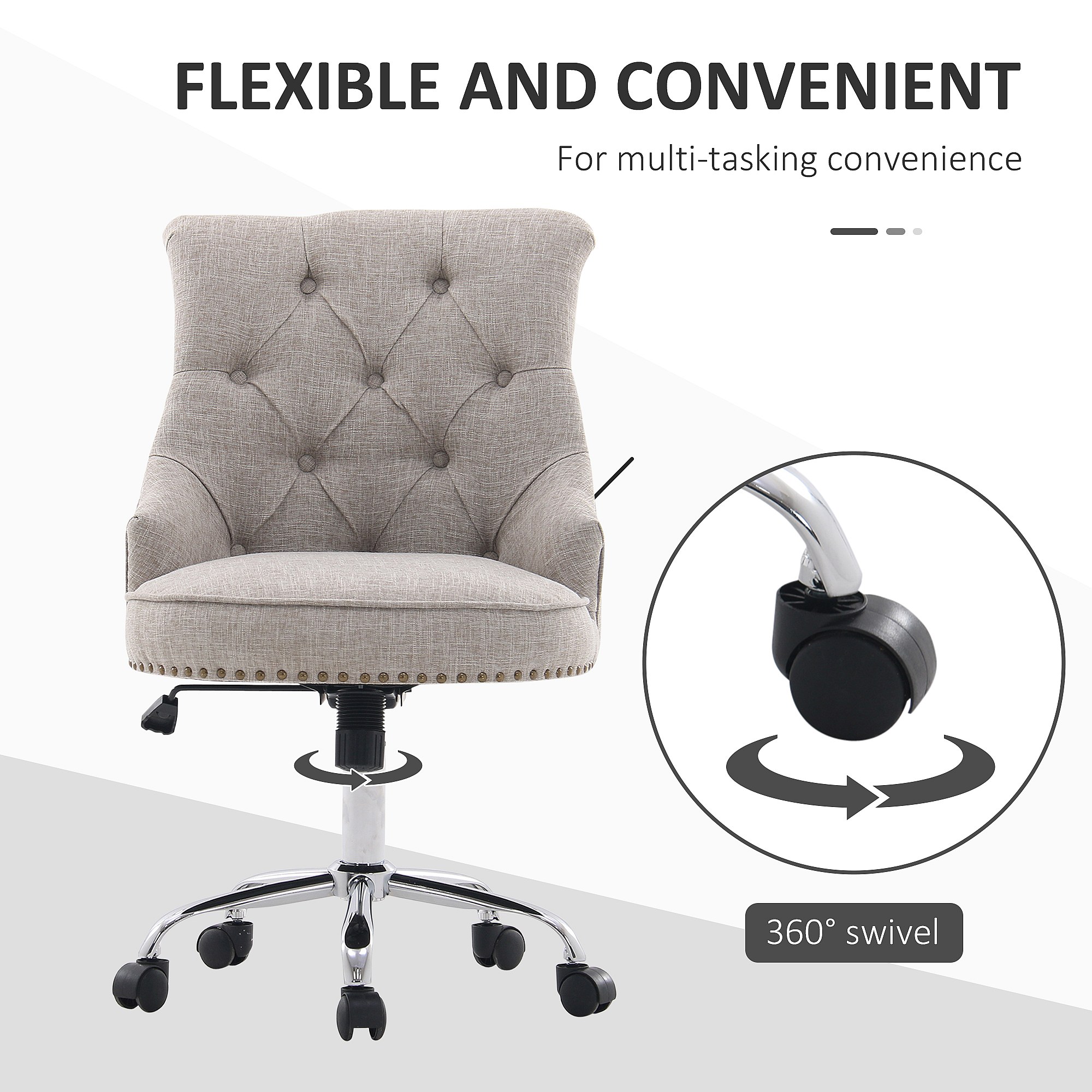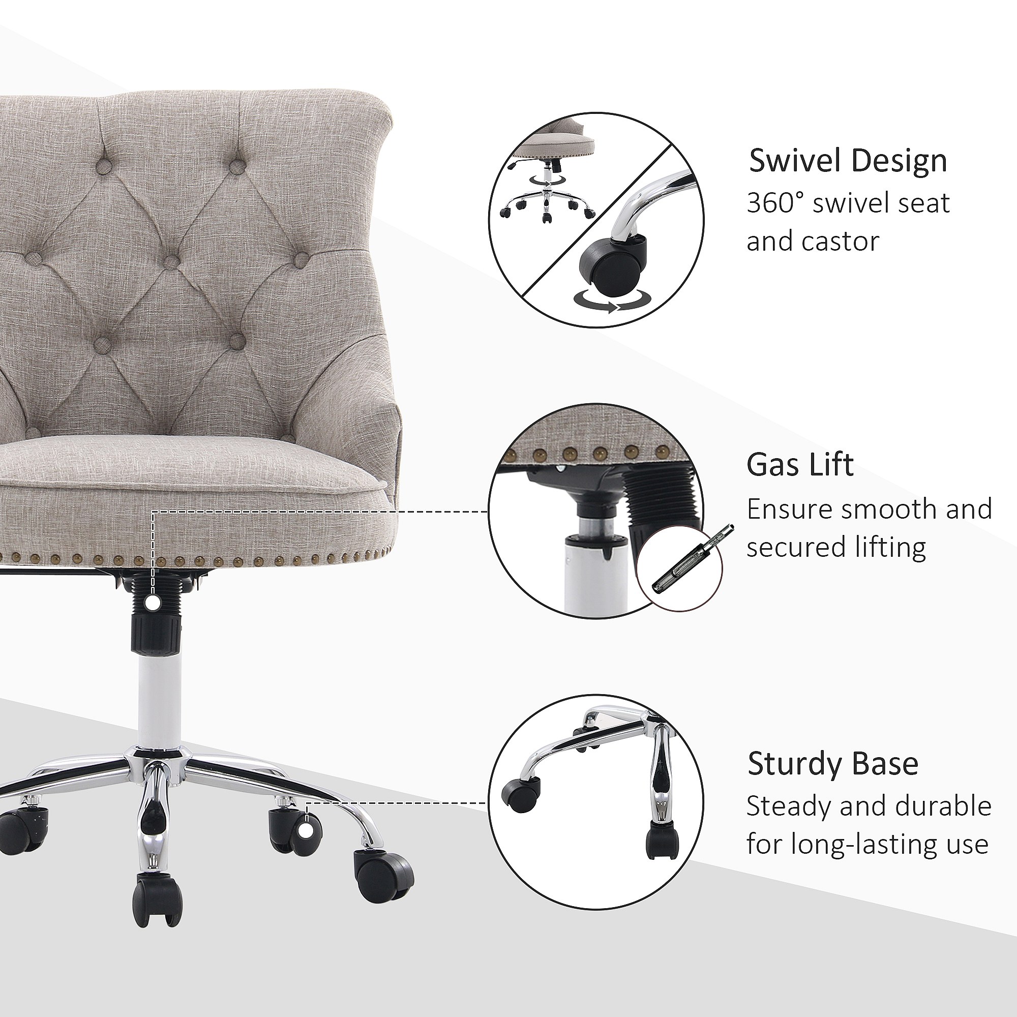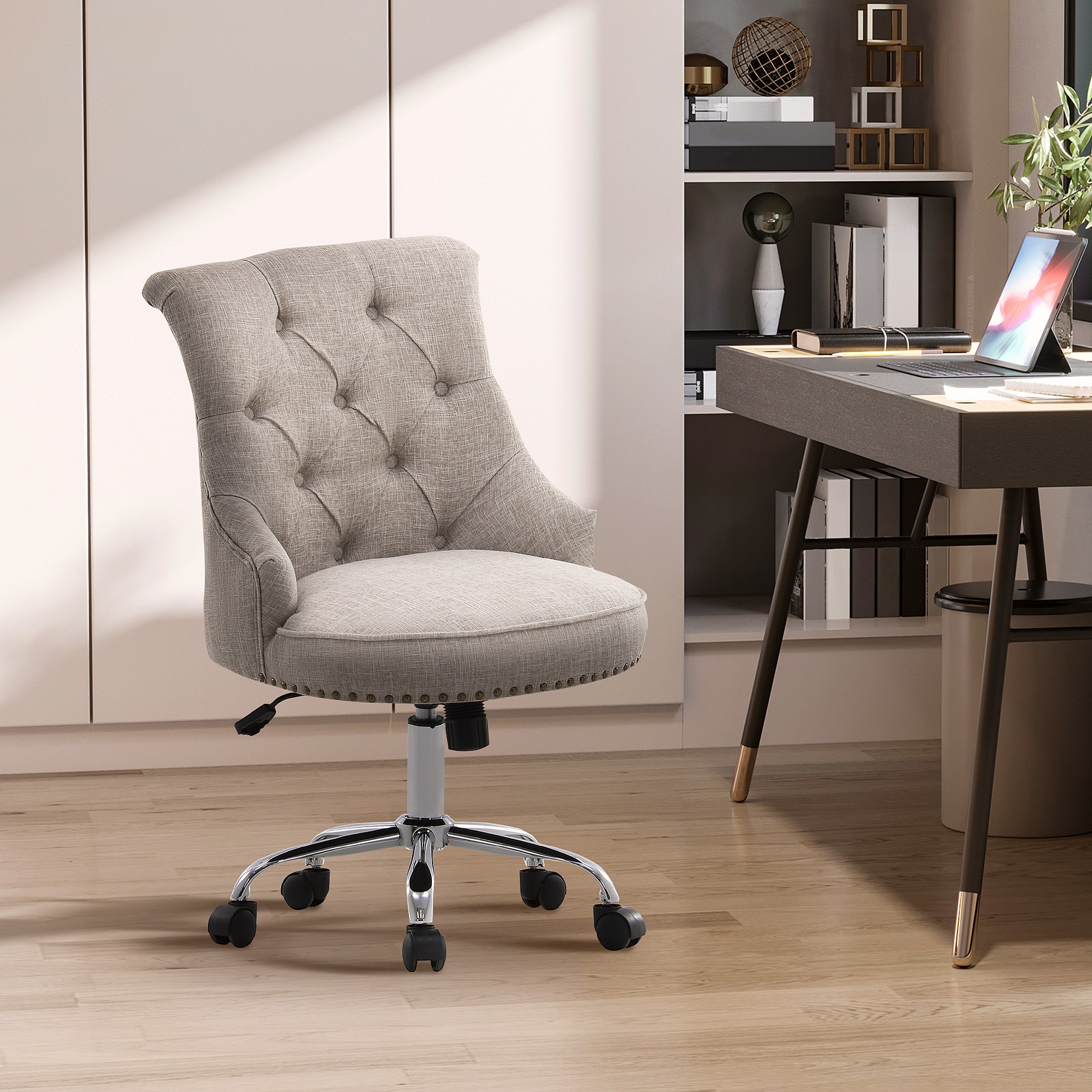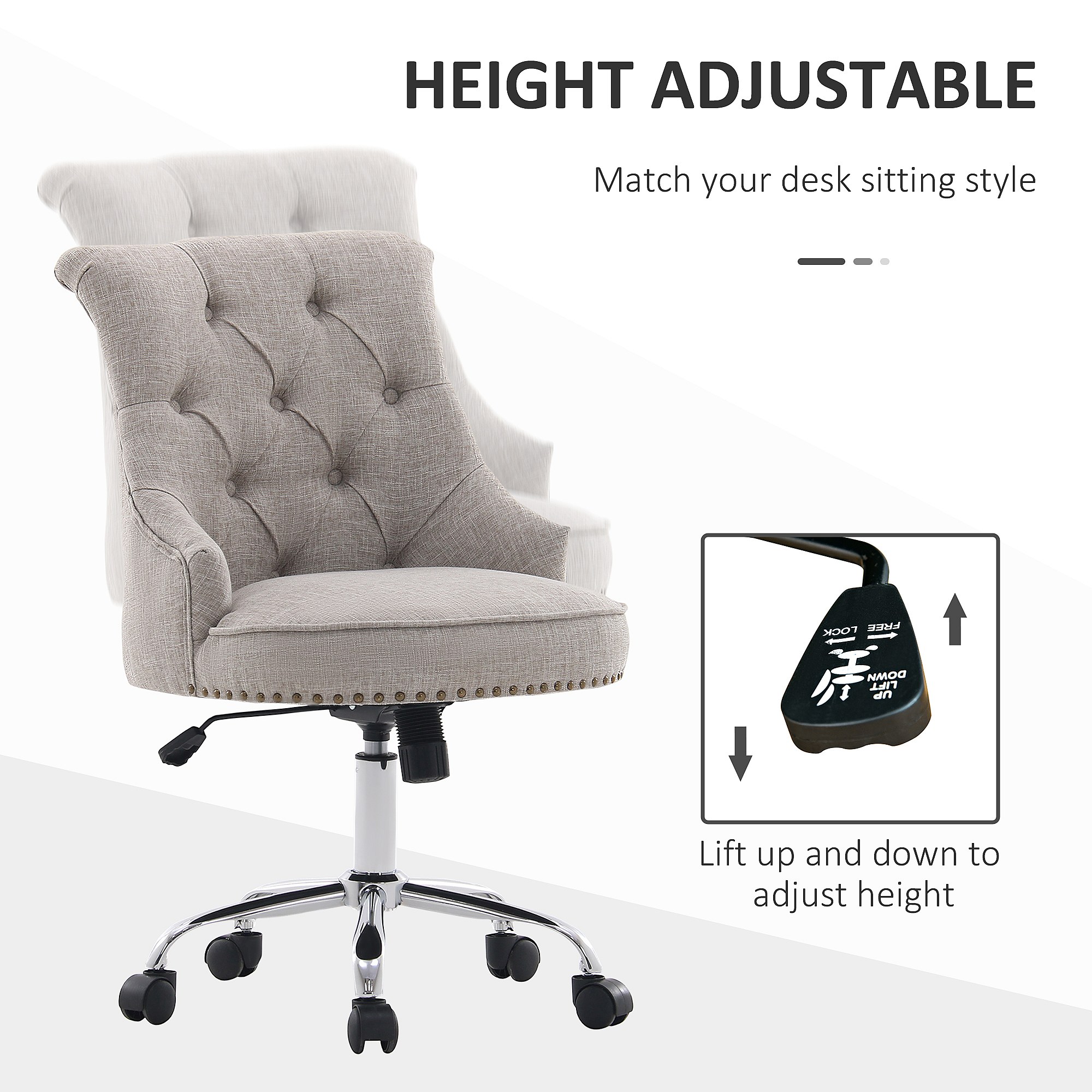 Draaifauteuil, ergonomisch en gewatteerd, in hoogte verstelbaar, retrodesign, lichtgrijs linnen, belastbaar tot 150 kg, 54x65,5x84-91 cm