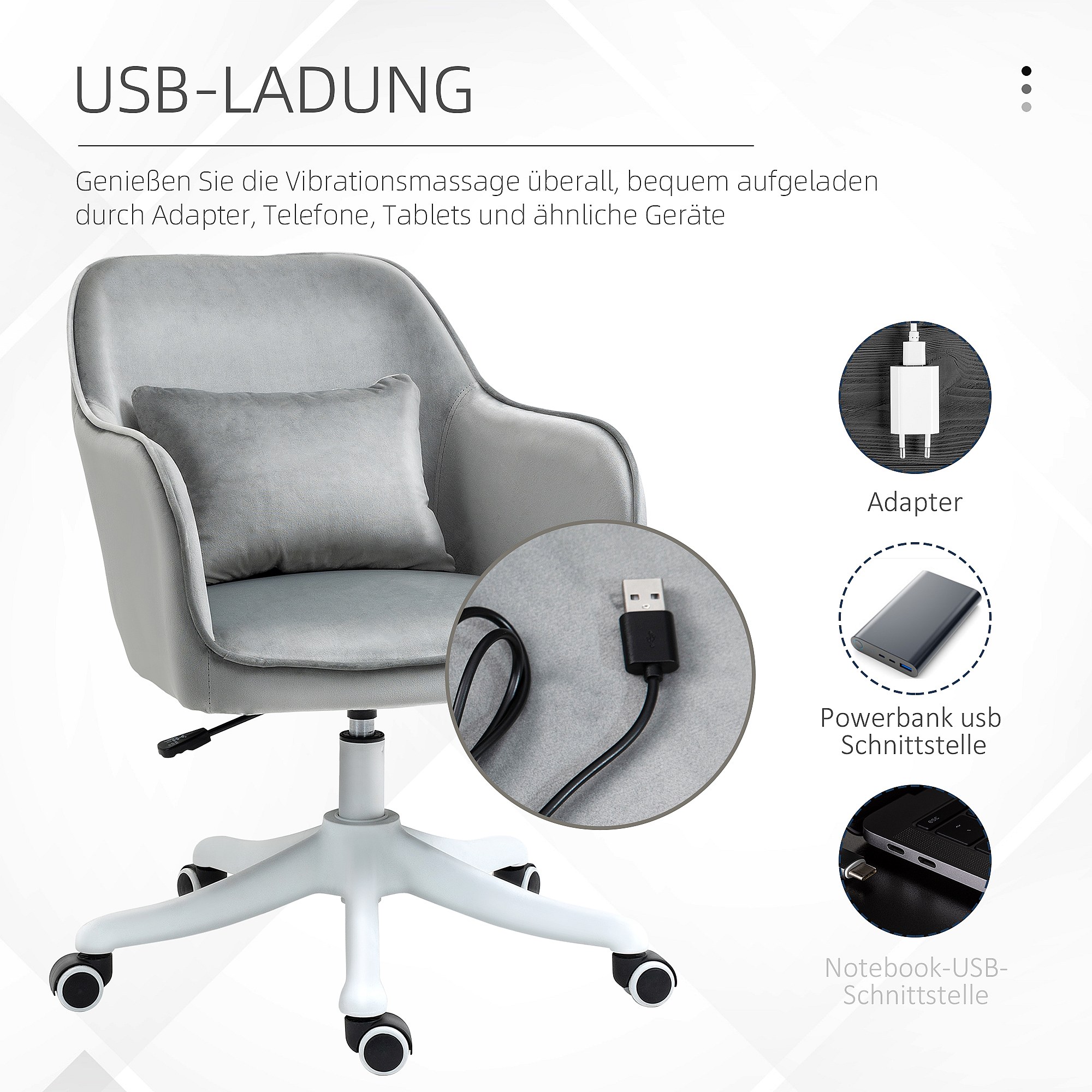Draaifauteuil voor de woonkamer, bureaustoel met massage, bureaustoel met armleuningen en lendenkussen, grijs, optimaal zitcomfort