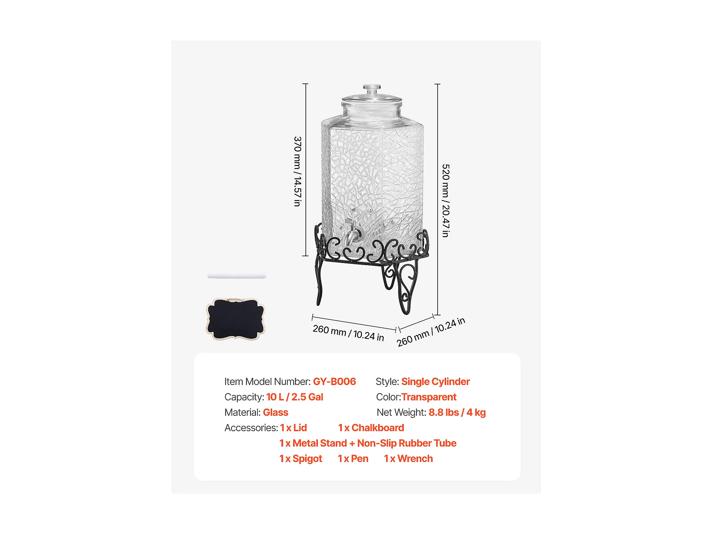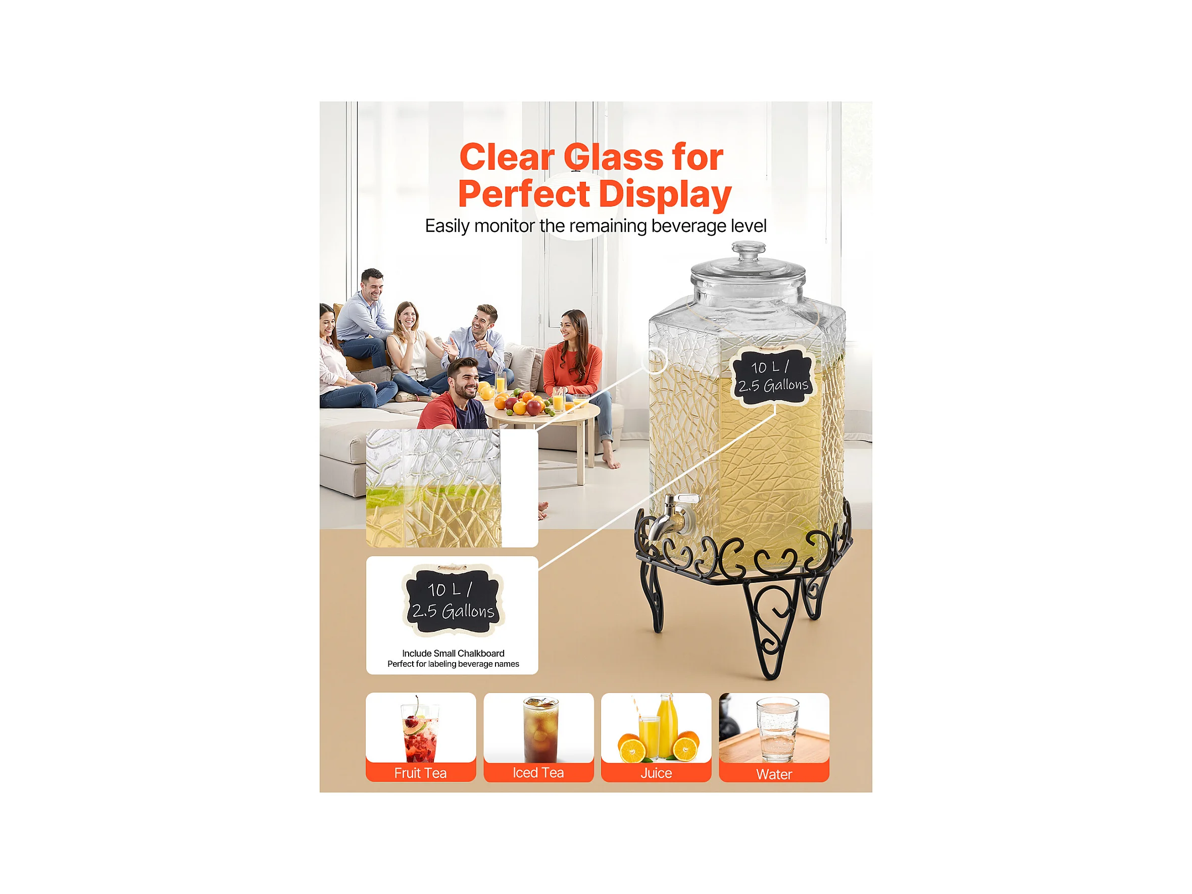Drankautomaat SucceBuy, Grote Capaciteit 10 L, Glazen Waterfontein, Distributie van Water, Limonade, Ijsthee, voor Koffie