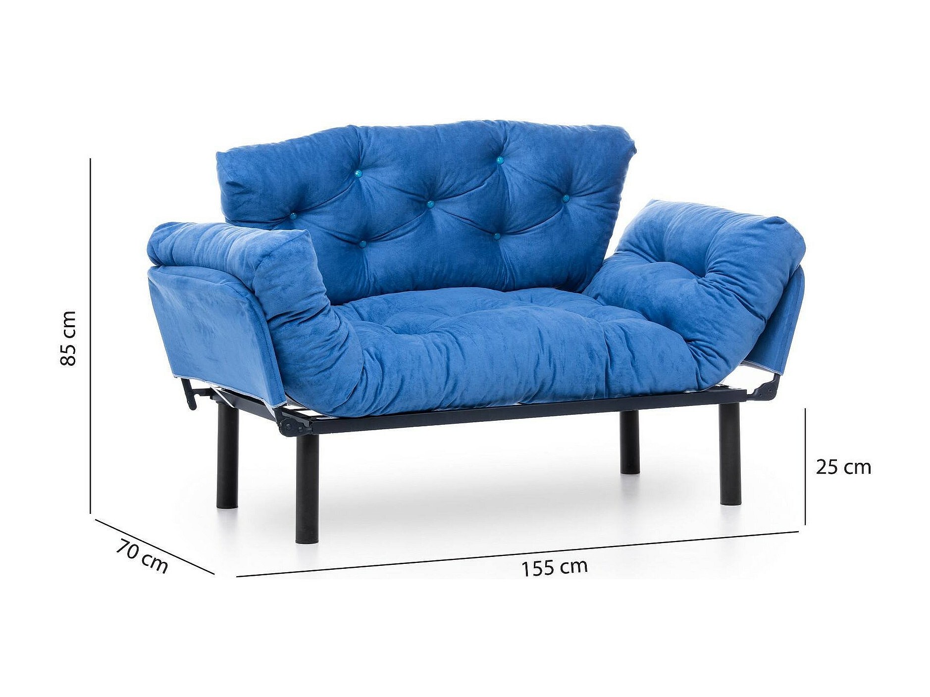 Dravagliol 2-zits slaapbank, Converteerbare bank, Gastenbank, Opbergfauteuil bed, 155x70 h85 cm, Blauw