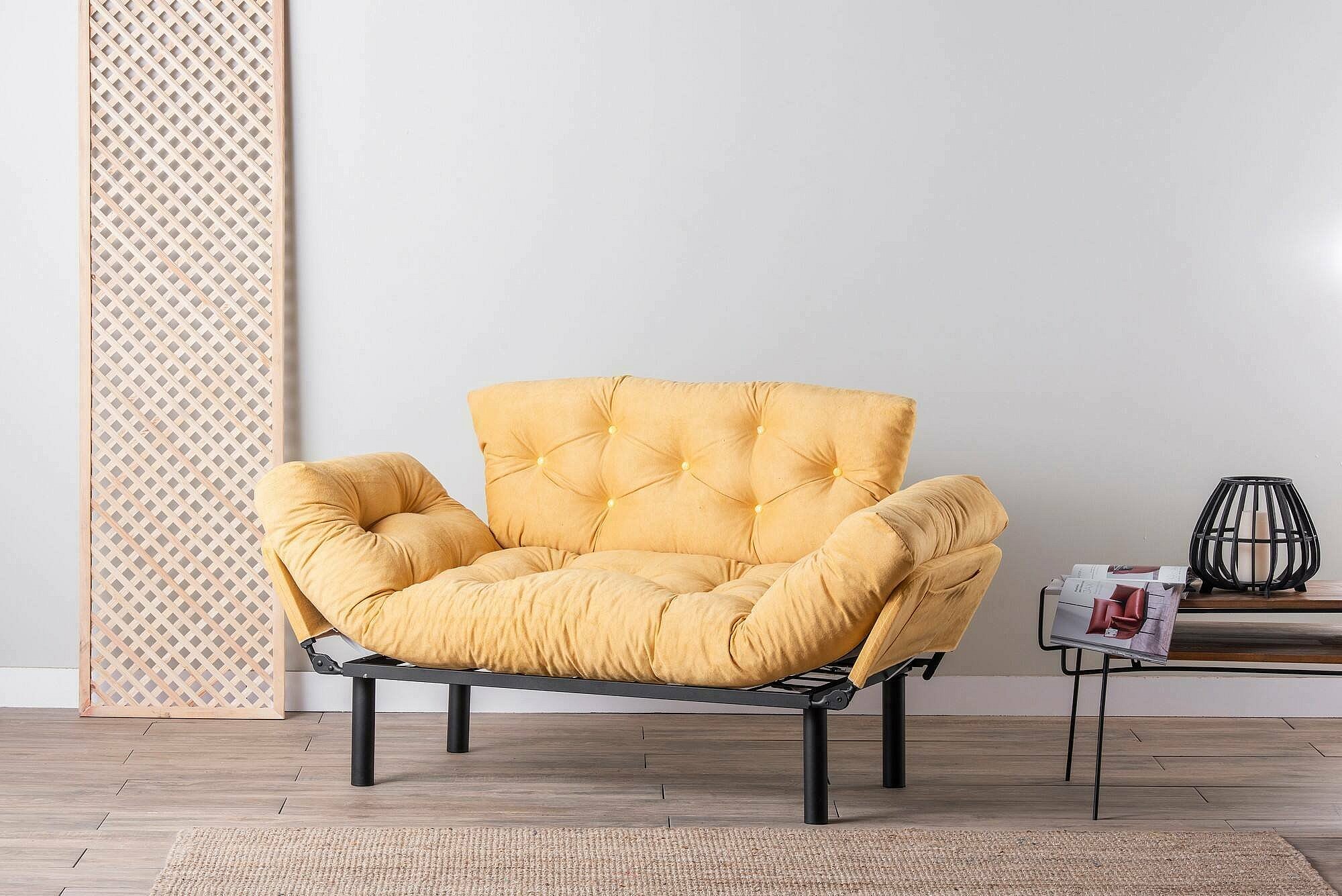 Dravagliol 2-zits slaapbank, Ombouwbank, Gastenbank, Opbergfauteuil bed, 155x70 h85 cm, Geel