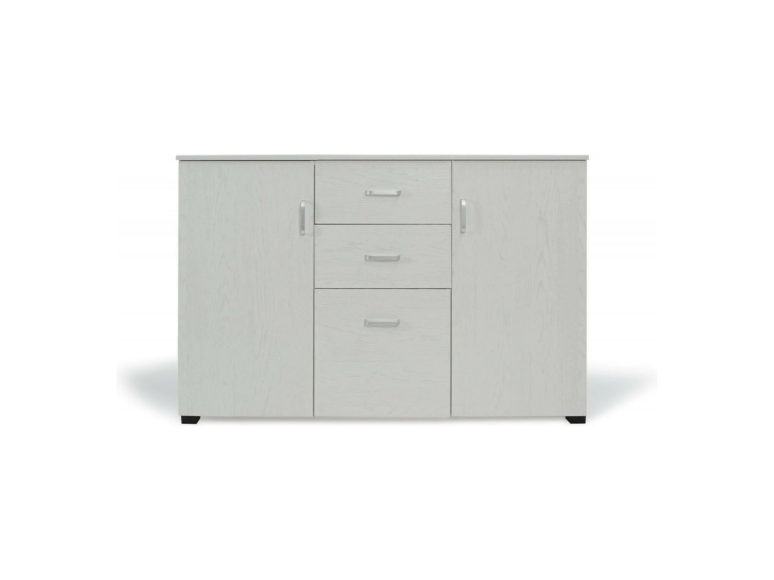 Dressoir 0, Modern buffet met 3 deuren en 2 laden, Lineair dressoir met planken, Made in Italy, 120x40h83 cm, Gebleekt eiken