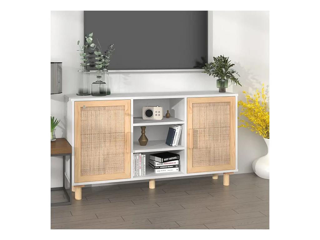 Dressoir 105x30x60 cm massief grenenhout en rattan wit NL842429