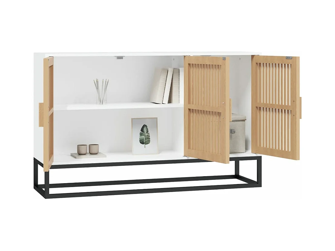 Dressoir 105x30x60 cm massief grenenhout en rattan wit NL842429