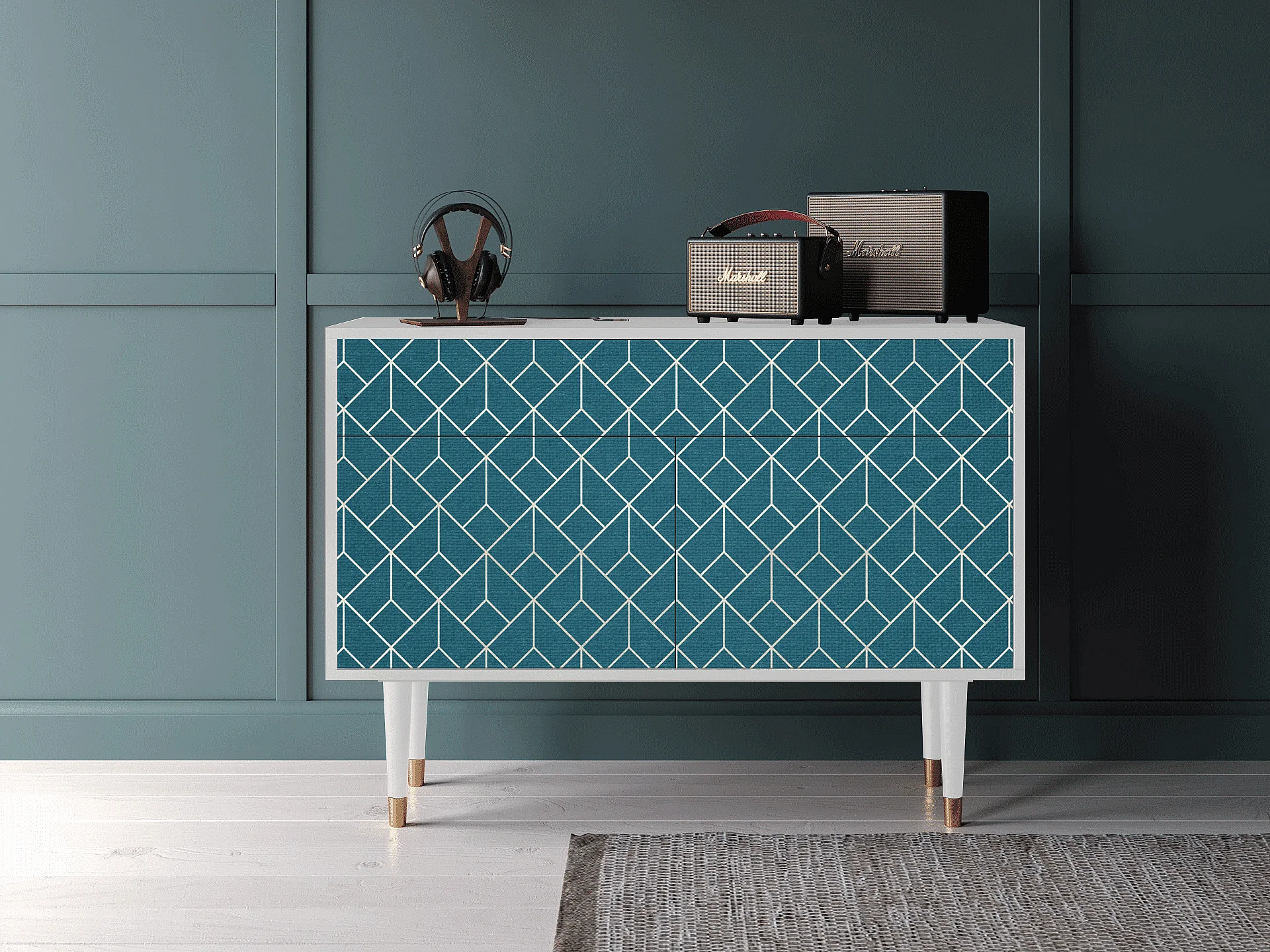 Dressoir - 115x85x48 cm - BS4 - Turquoise Geometry, Wit