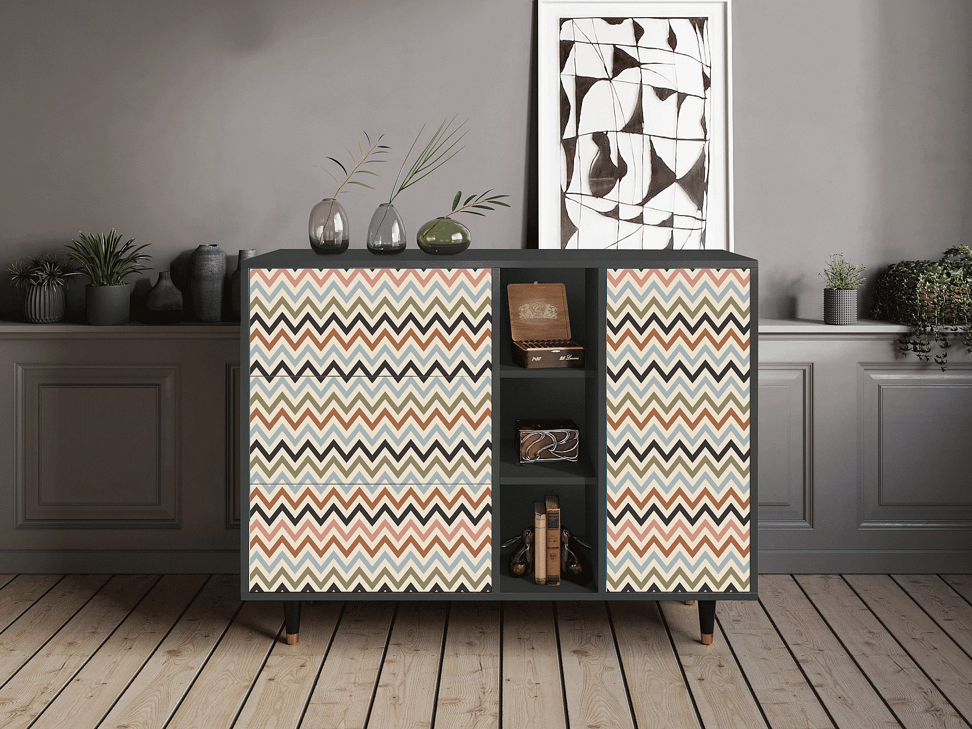 Dressoir - 125x98x48 cm - BS2 - Bright Ripple, Antraciet