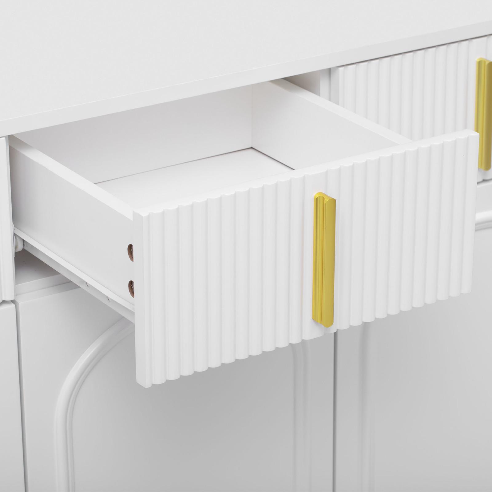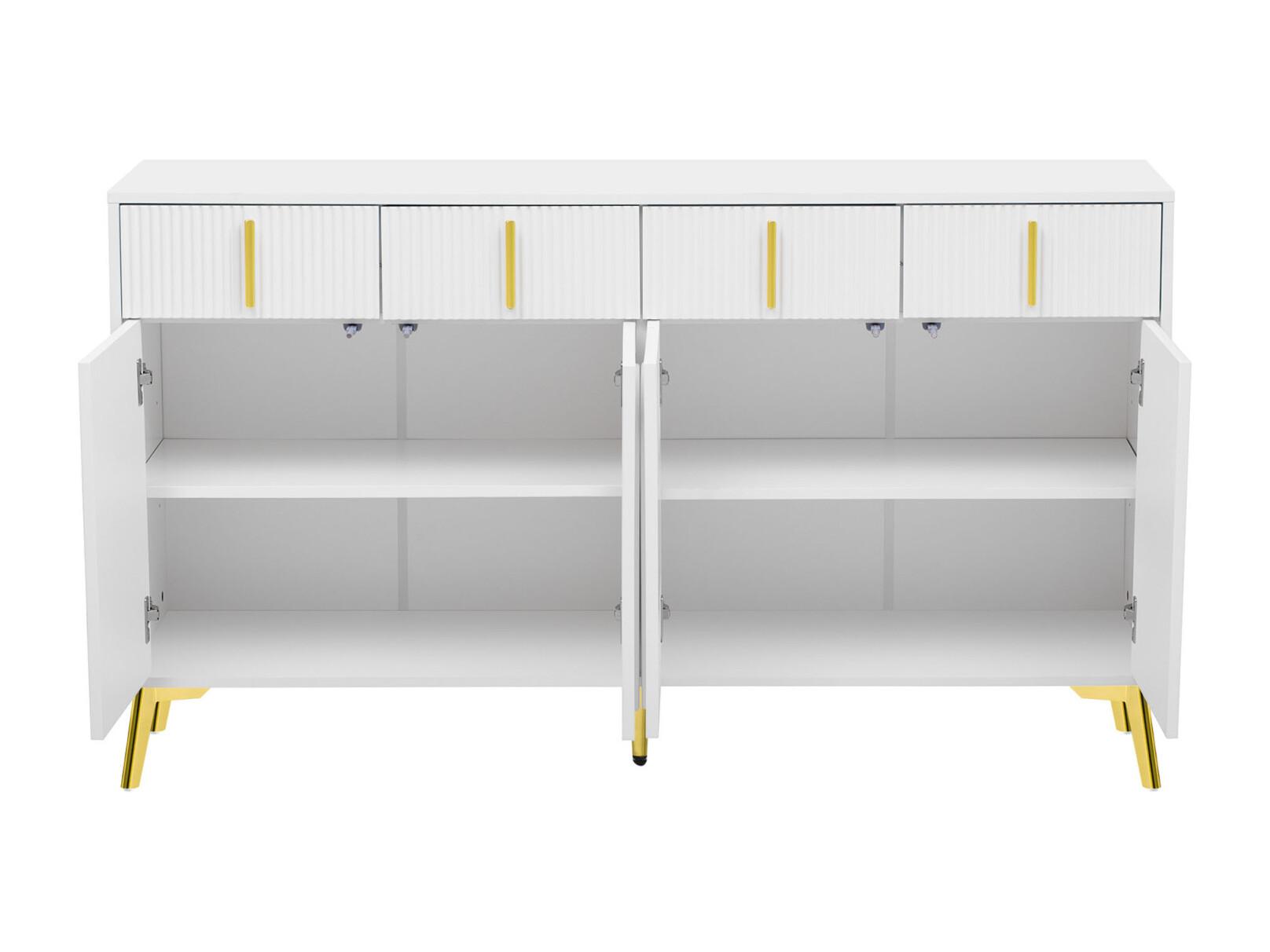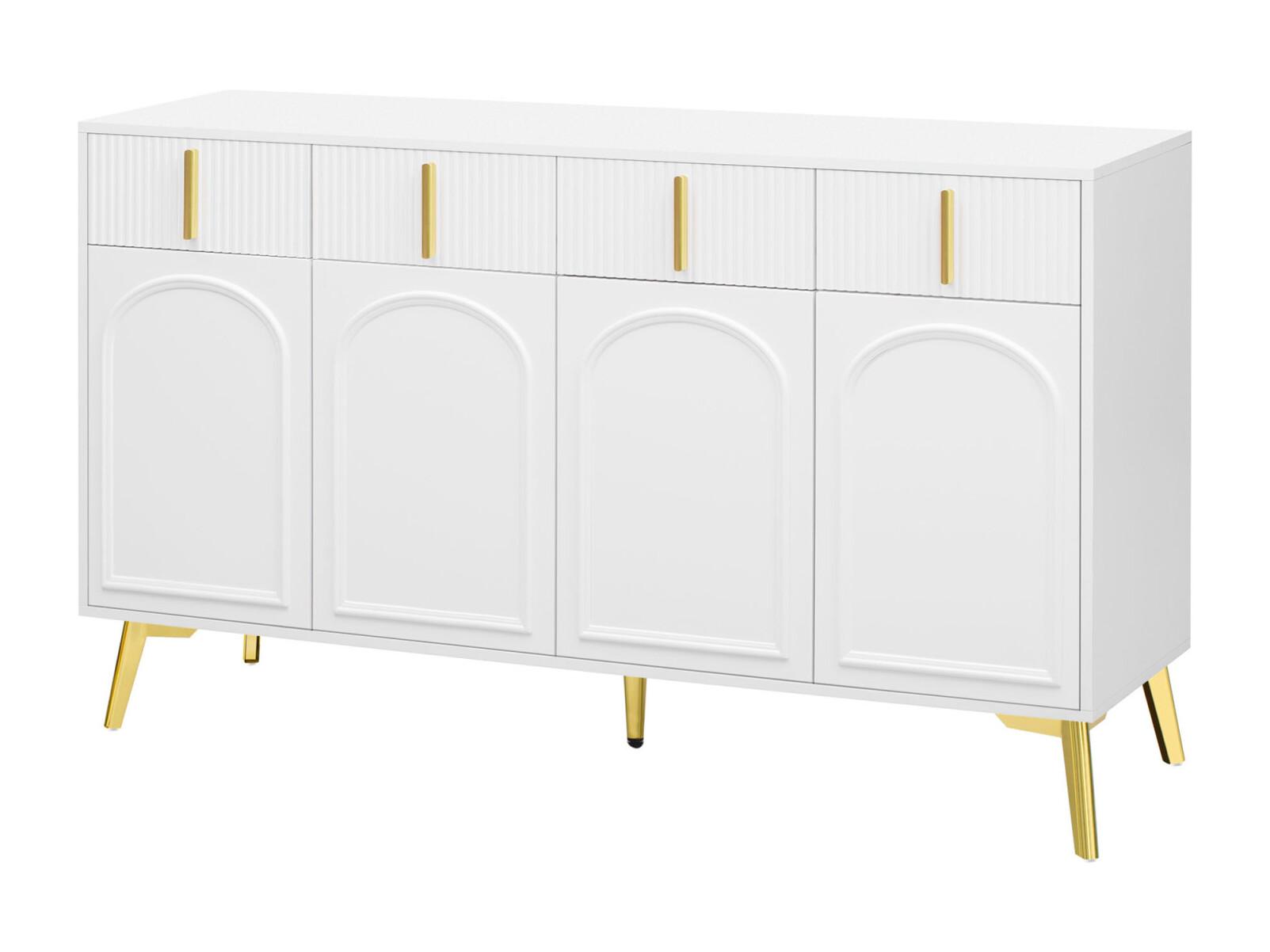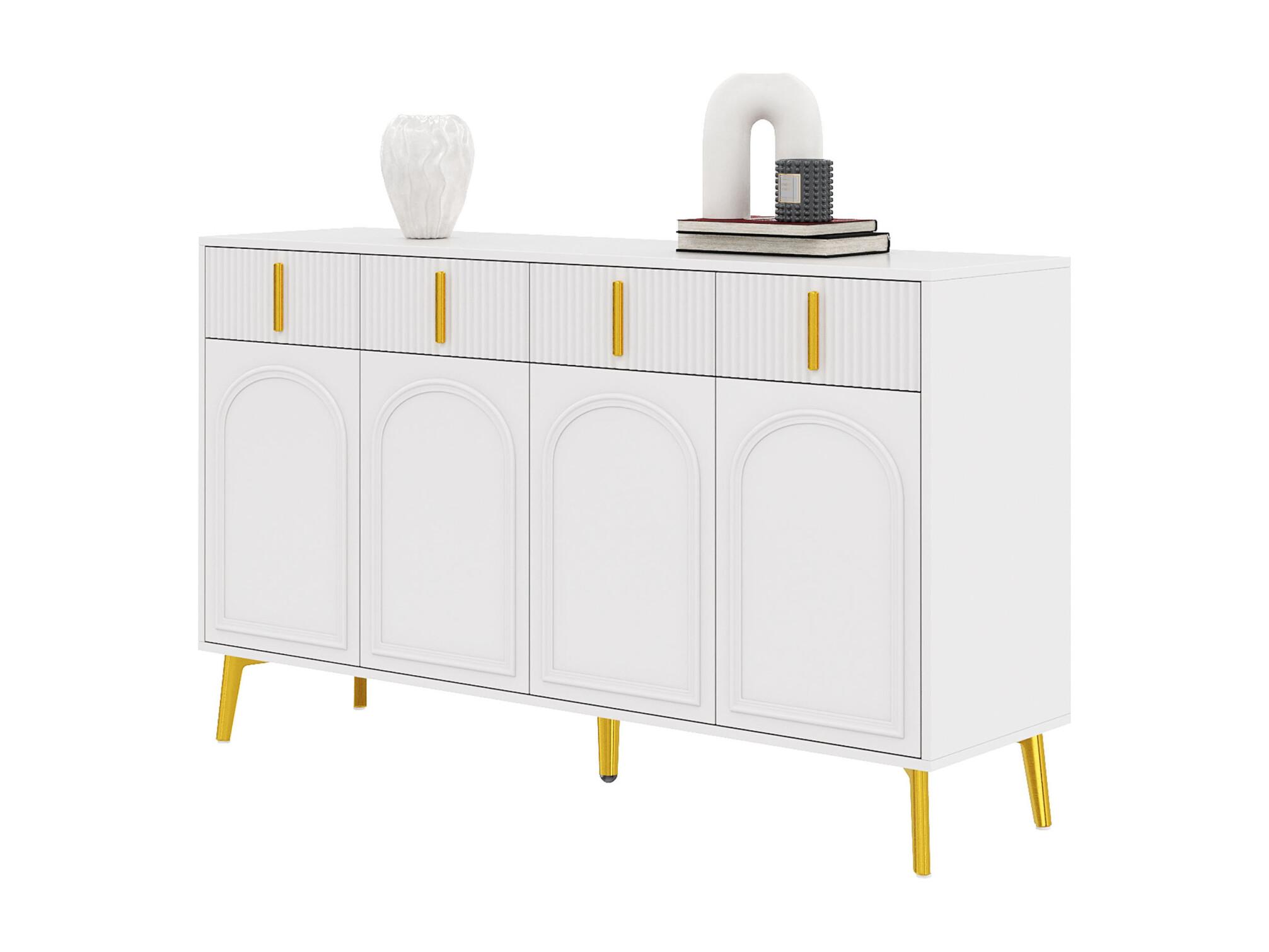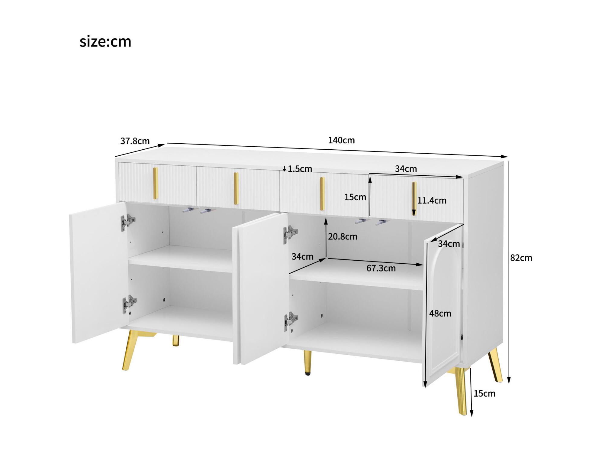 Dressoir 140x37,8x82cm - met 4 deuren, 4 laden, gouden handgrepen en poten - afneembaar laminaat - Wit