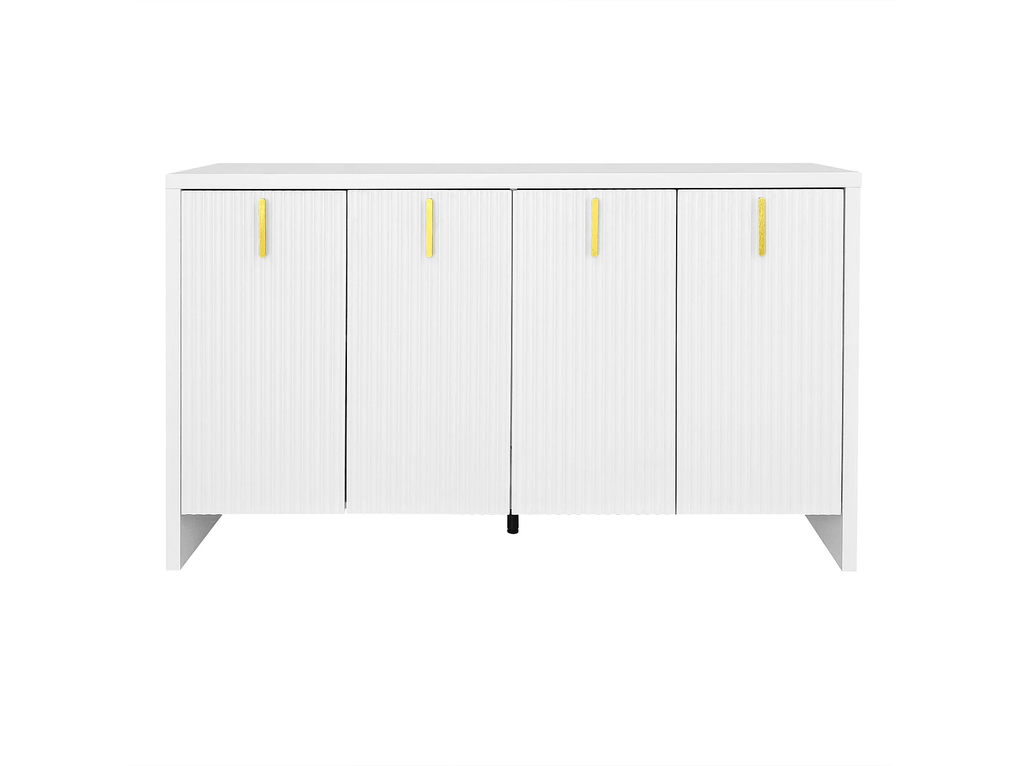Wit 4-deurs dressoir, modern design zonder greep, gehard glas en metalen frame, voor woonkamer of eetkamer
