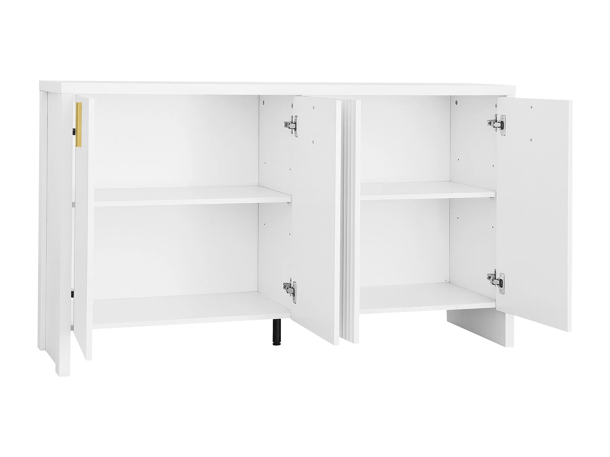 Wit dressoir met 3 getextureerde deuren en verstelbare planken, cilindrische poten - MDF