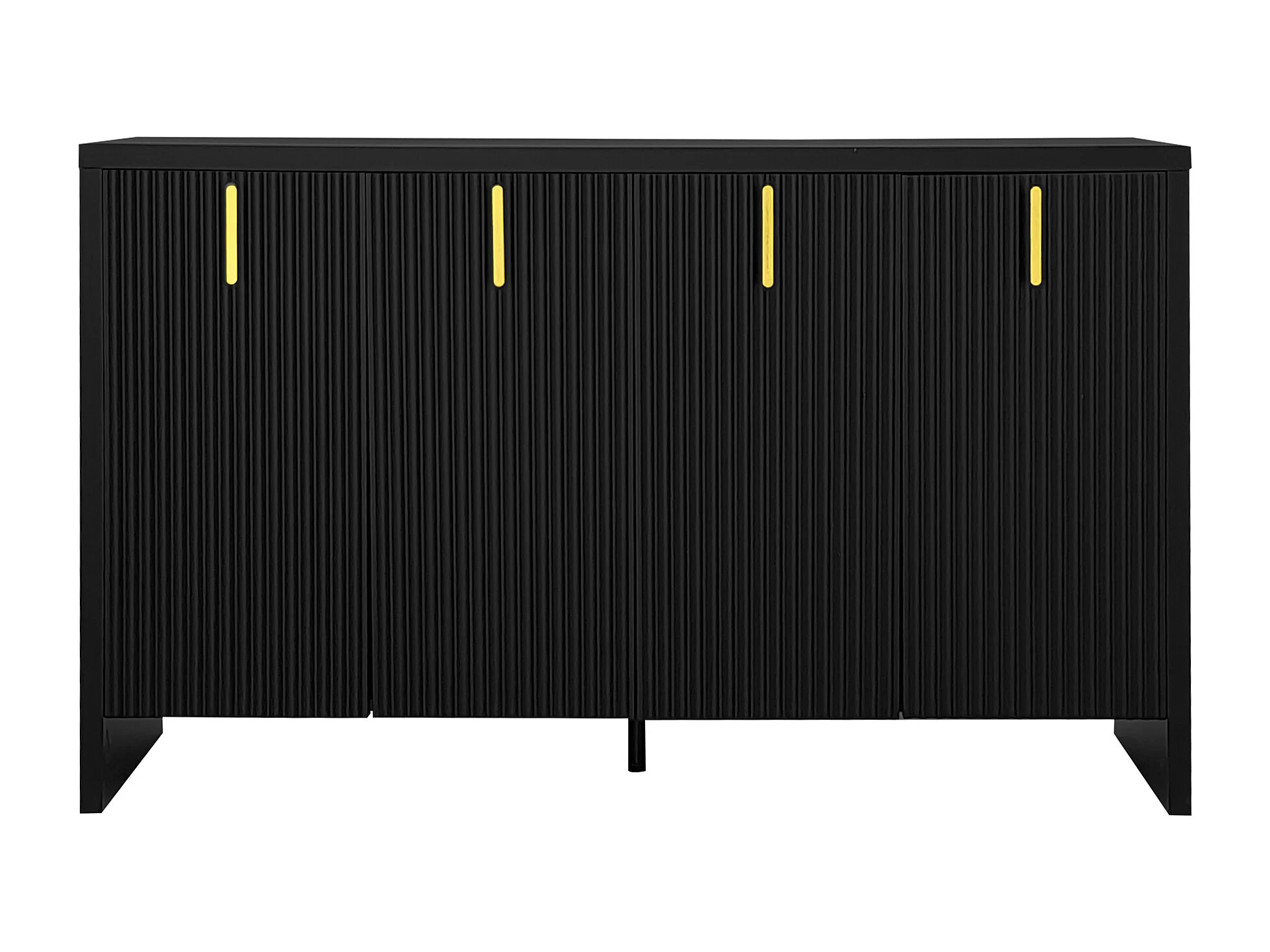 Zwarte Dressoir - 4-deurs, 5-poot Dressoir - Verstelbare compartimenten - voor eetkamer en woonkamer