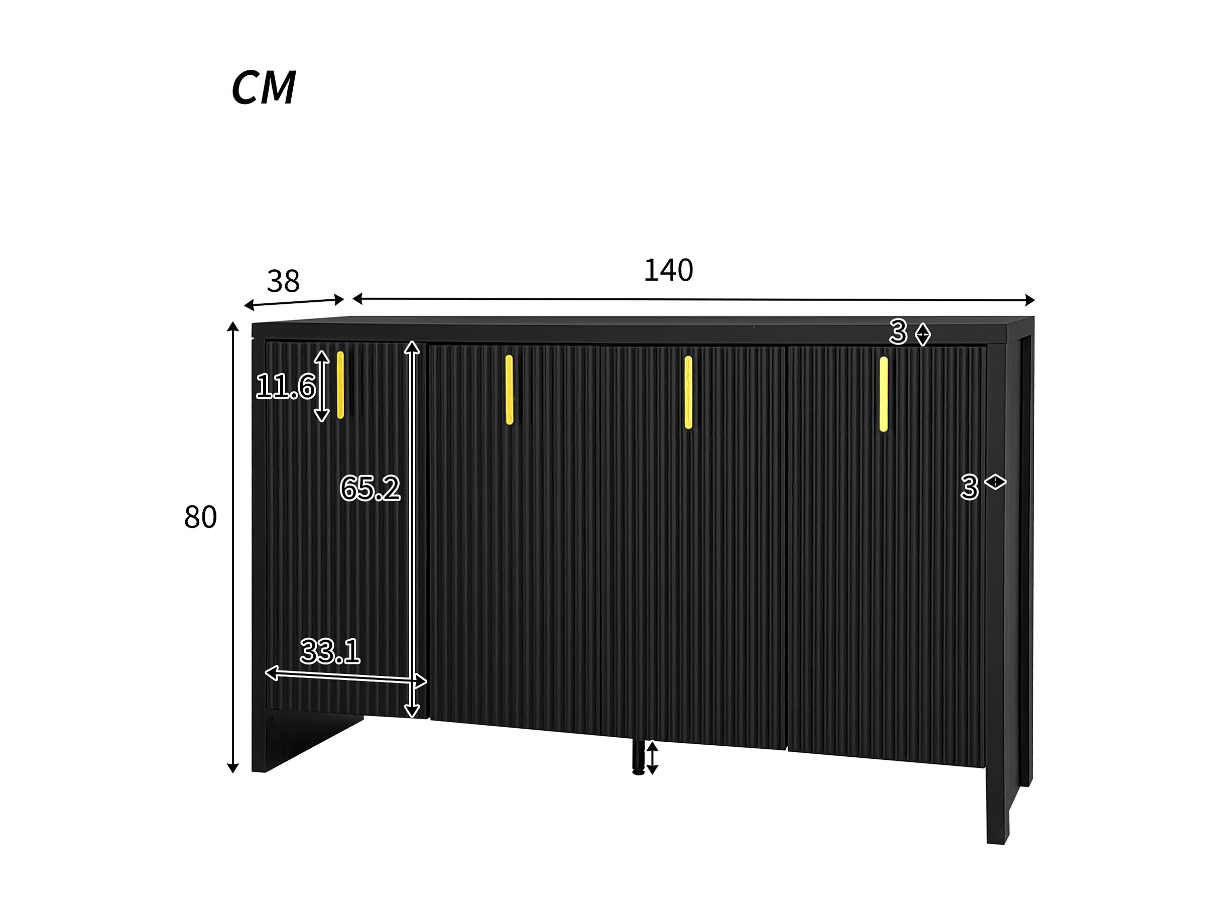 Dressoir 140x38x80 cm met verstelbare en uitneembare tussenschotten van zwarte spaanplaat voor de eetkamer