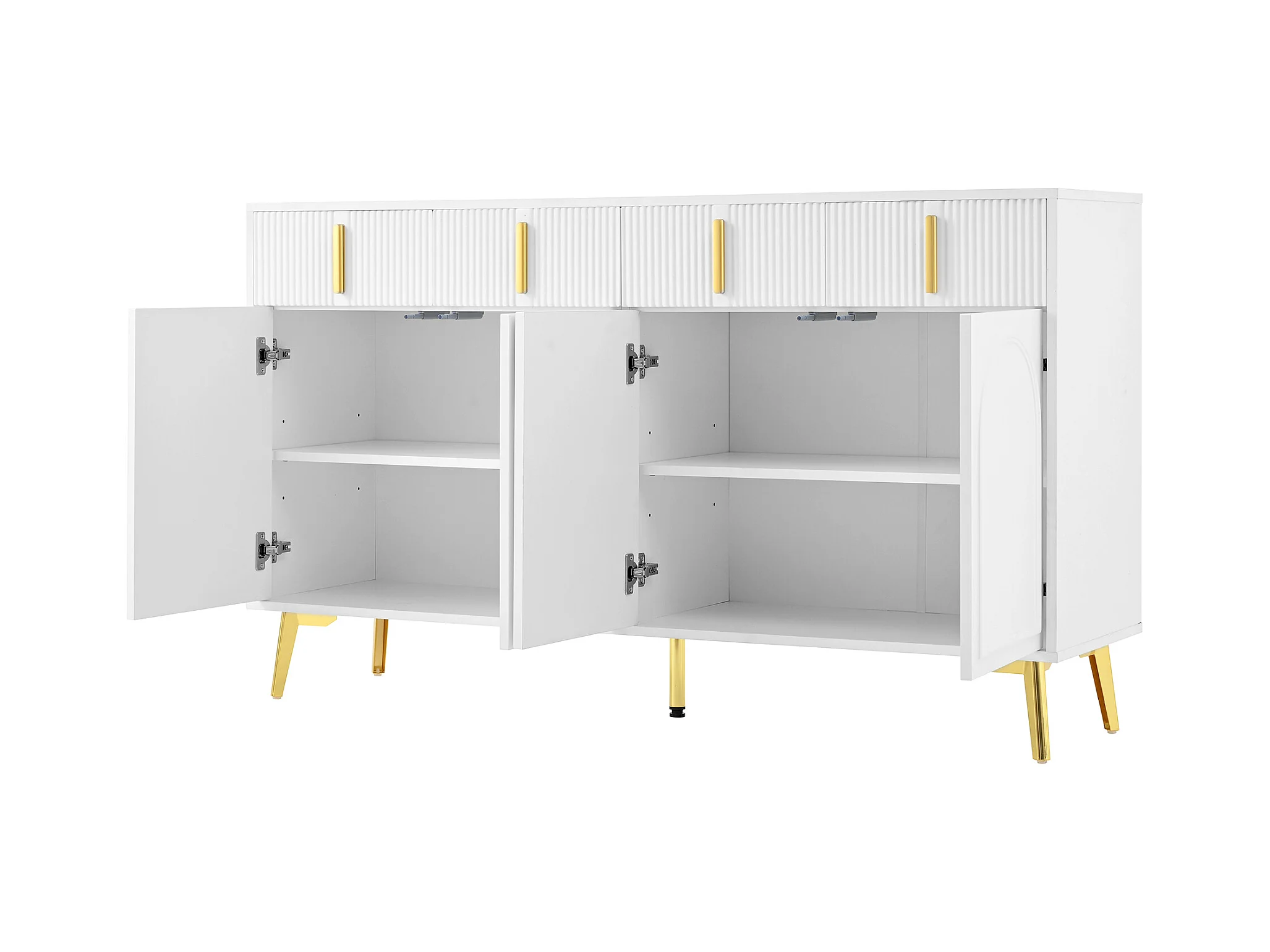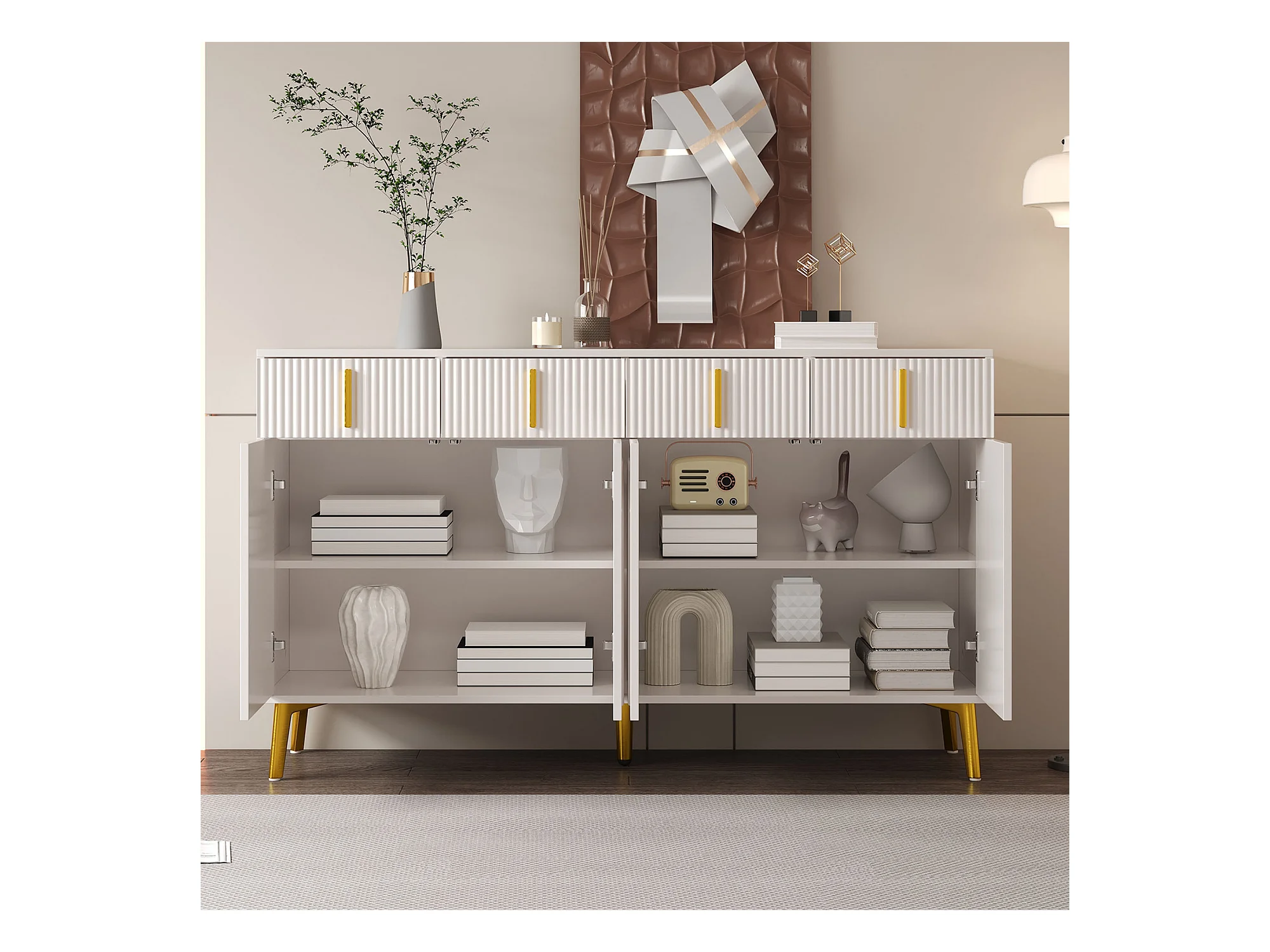 Wit 4-deurs dressoir, modern design zonder greep, gehard glas en metalen frame, voor woonkamer of eetkamer