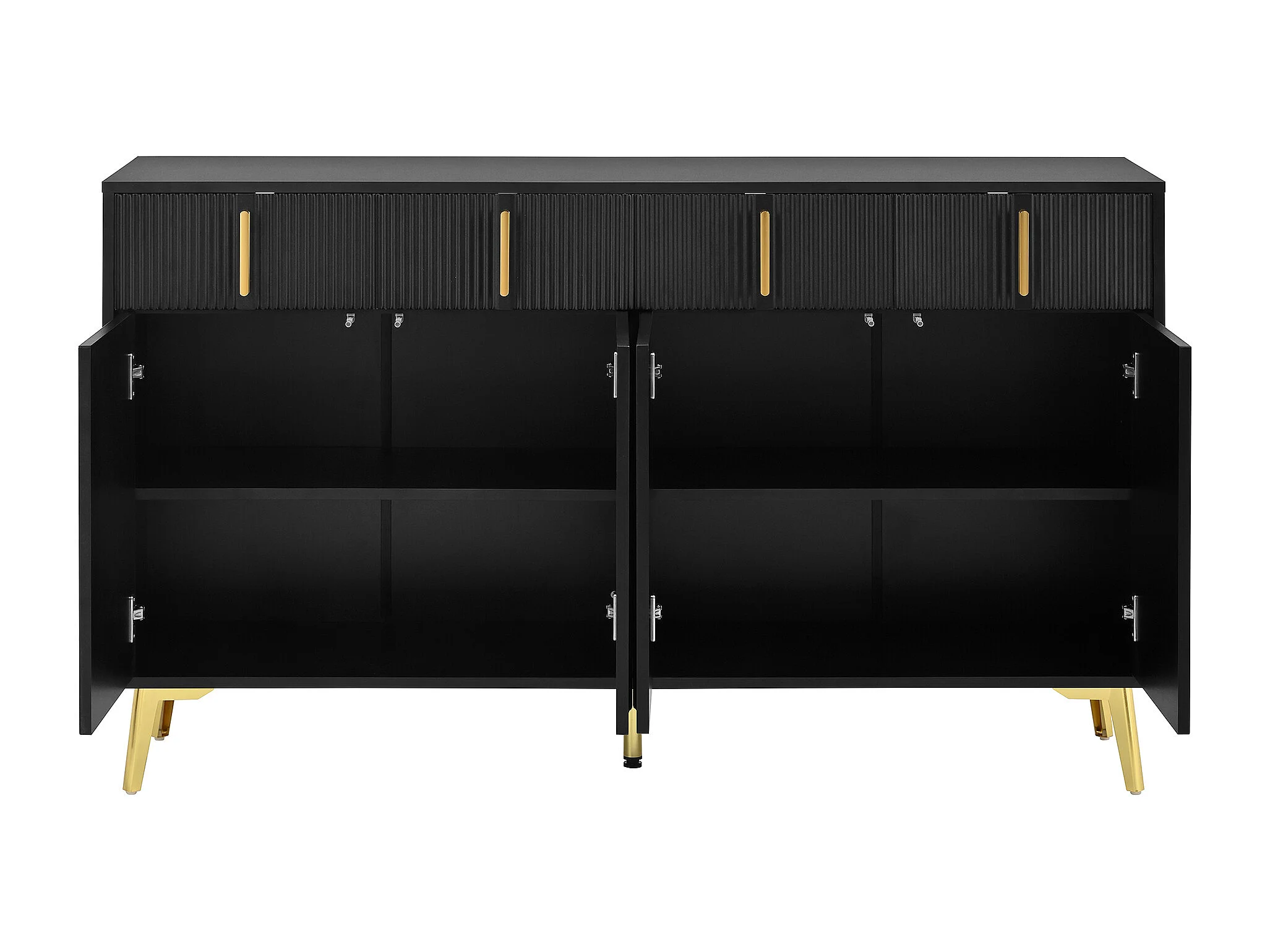 Zwarte Dressoir - 4-deurs, 5-poot Dressoir - Verstelbare compartimenten - voor eetkamer en woonkamer