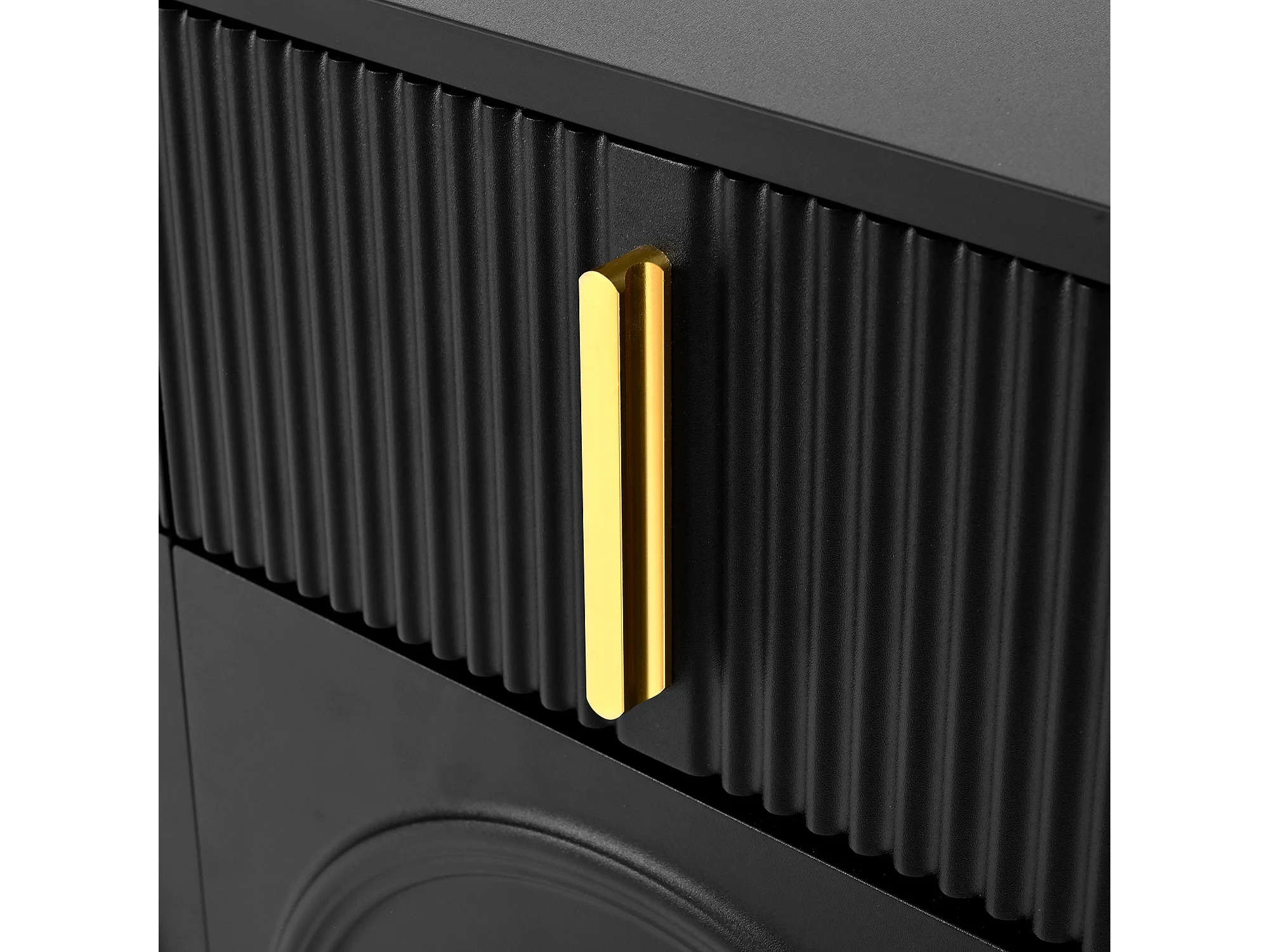 Dressoir 140x38x82 cm met lades en verstelbare tussenschotten. Gemaakt van zwart MDF, geschikt voor woonkamer en keuken.