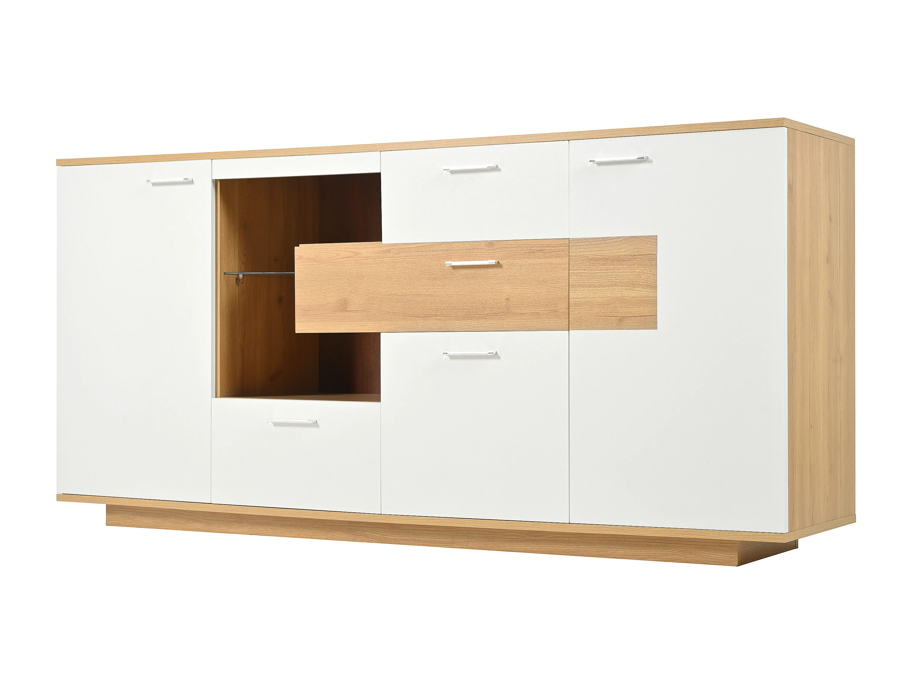 Dressoir 160x40x77cm met 4 lades, 2 deuren, 1 nis en LED, body in hout en wit fineer