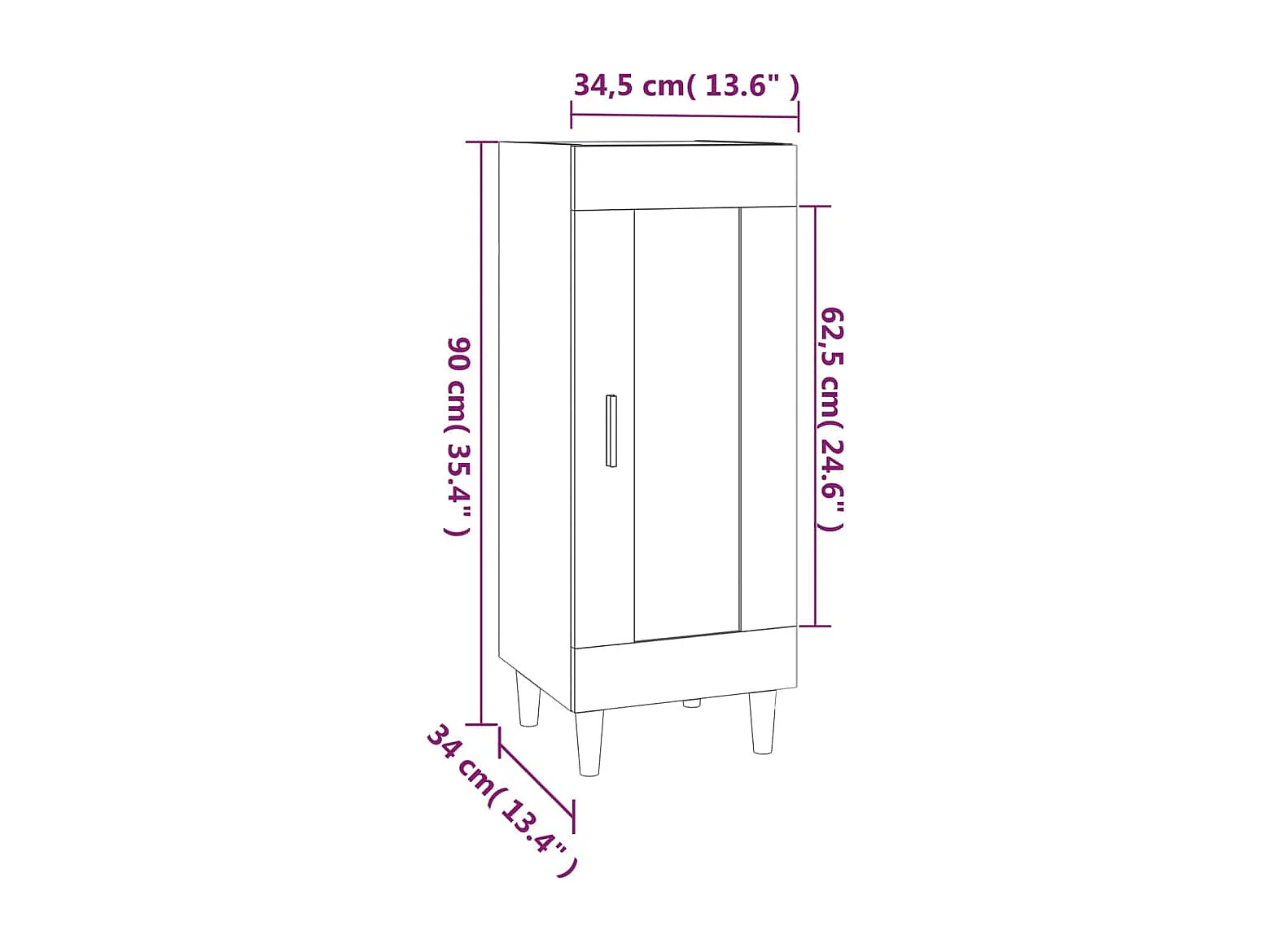 Dressoir 34,5x34x90 cm bewerkt hout bruin eikenkleur NL87605