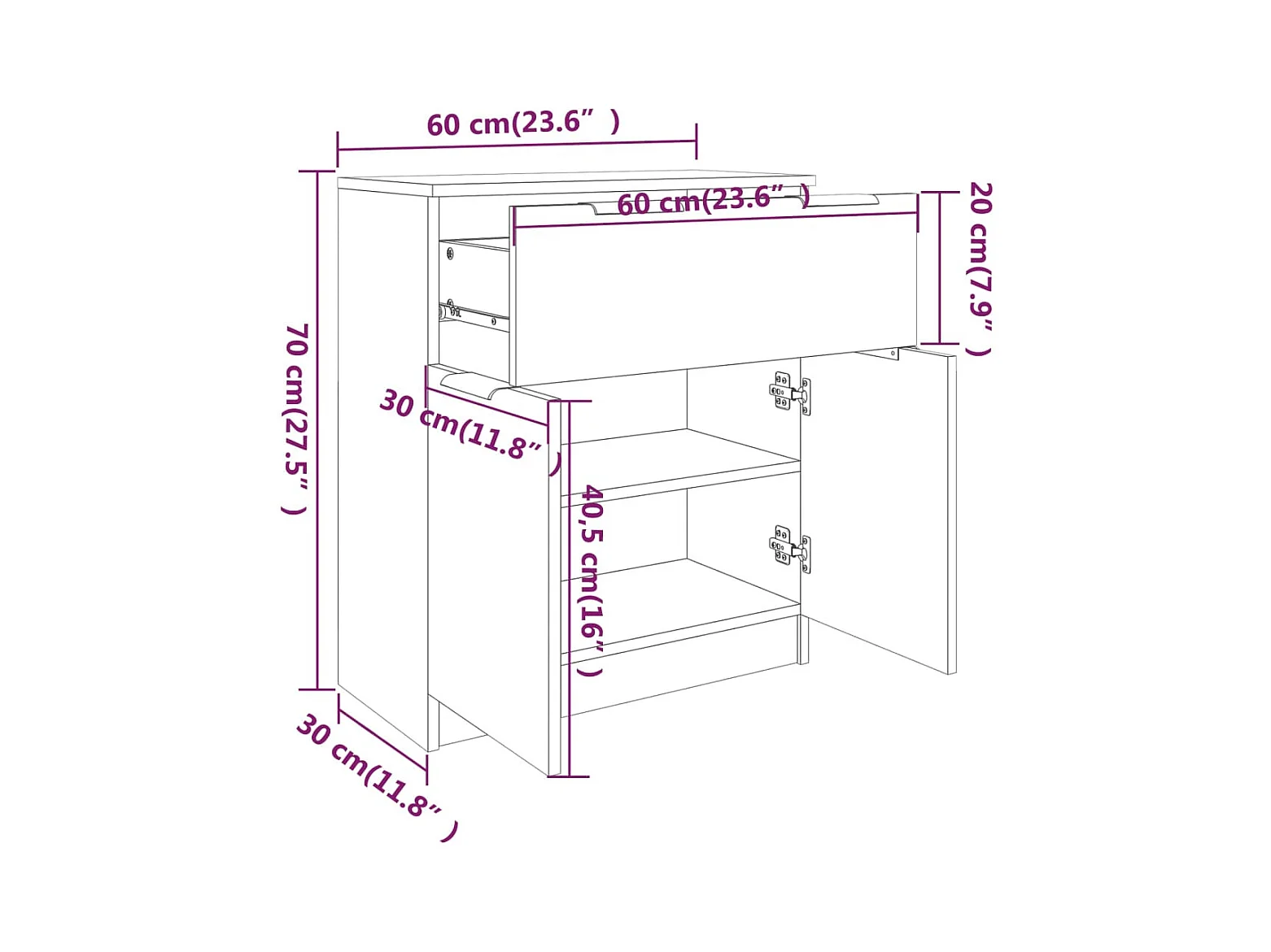 Dressoir 60x30x70 cm bewerkt hout sonoma eikenkleurig