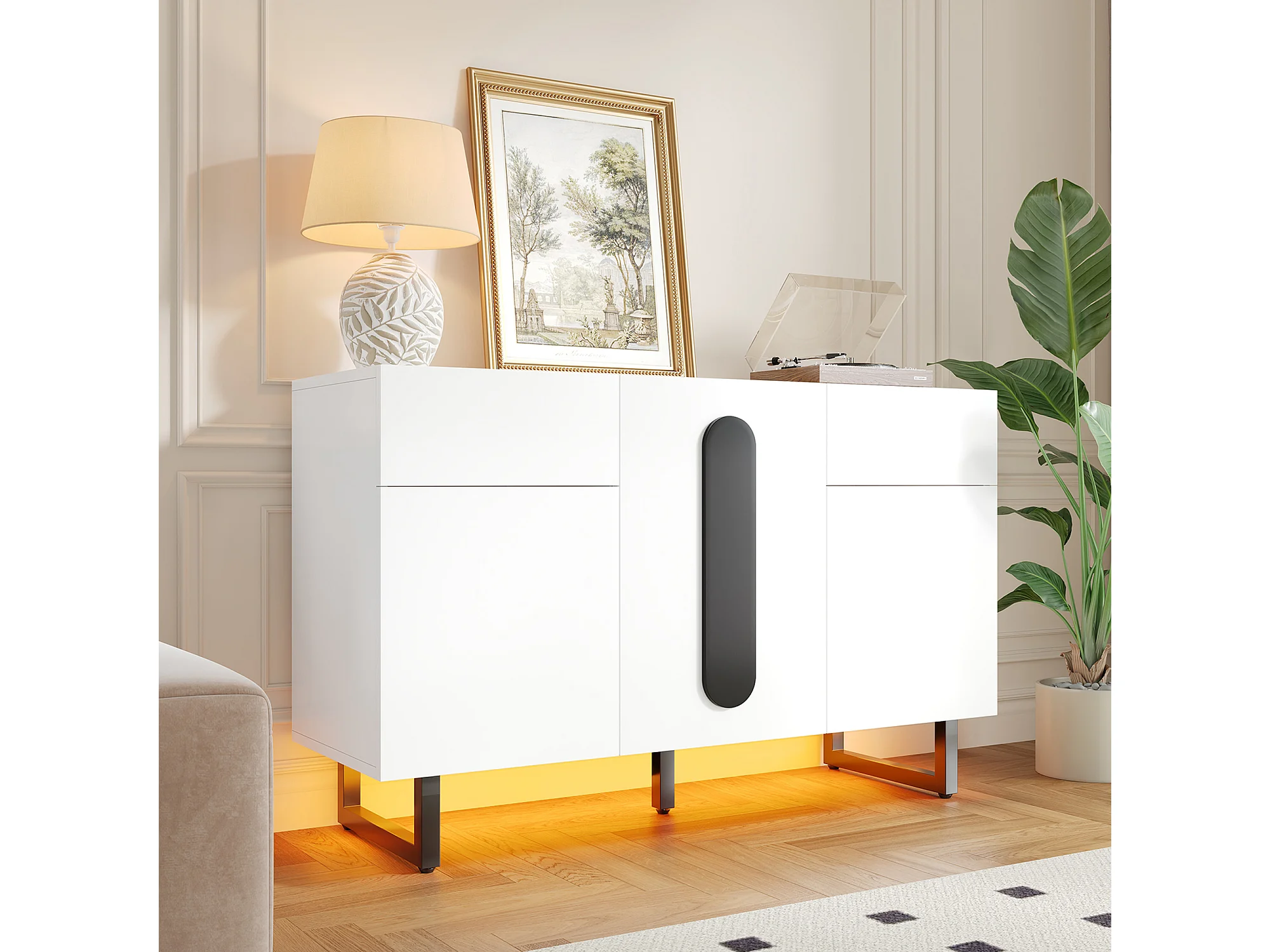 Buffetkast 120x40.5x75 cm, grote opbergruimte, verwijderbare planken, witte houtvezelplaat