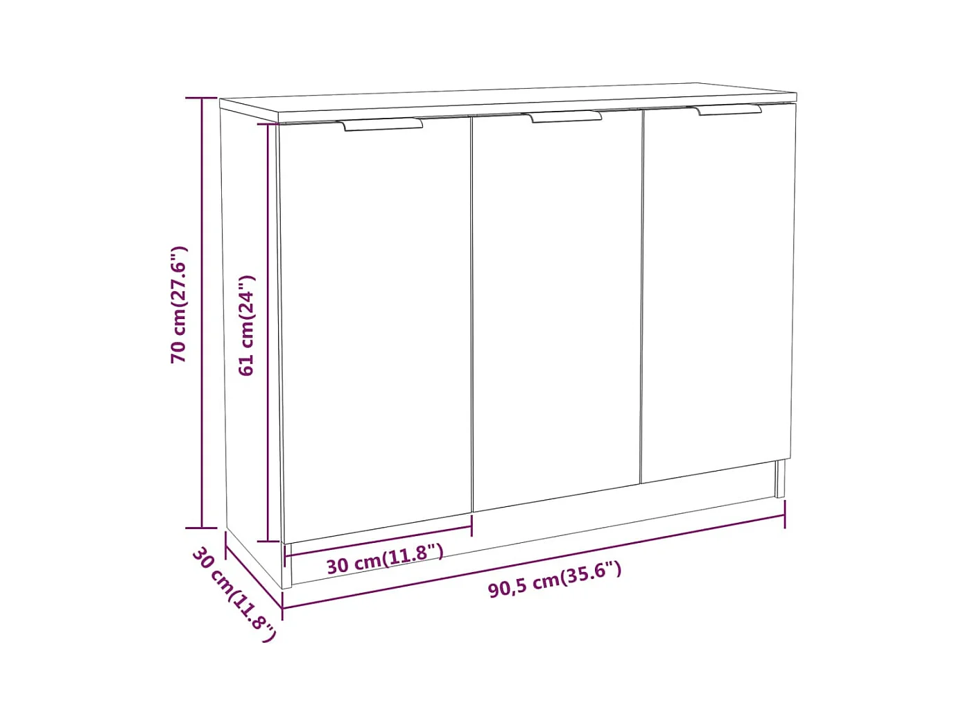 Dressoirs 3 st bewerkt hout sonoma eiken