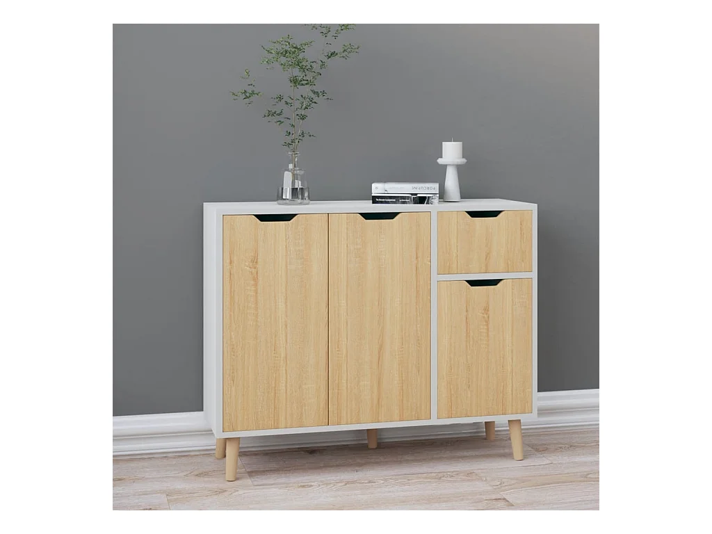 Dressoir 90x30x72 cm bewerkt hout wit en sonoma eikenkleurig NL99111