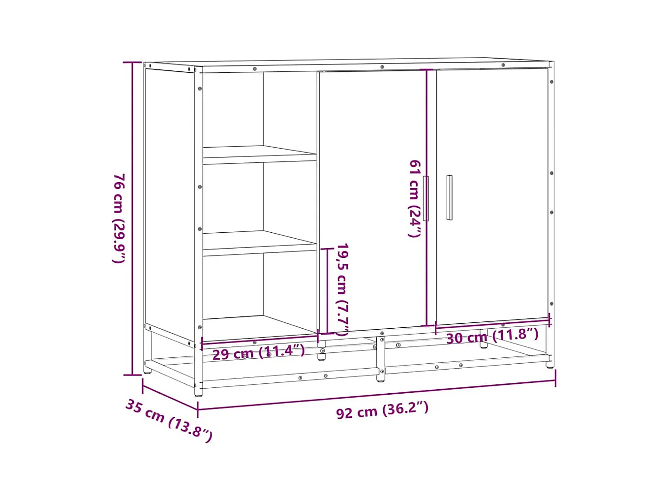 Dressoir 92x35x76 cm bewerkt hout grijs sonoma eikenkleurig