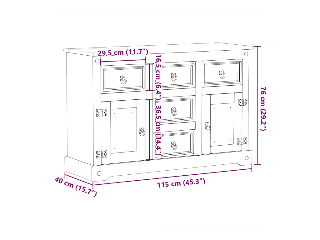 Dressoir Corona 112x40x75 cm massief grenenhout