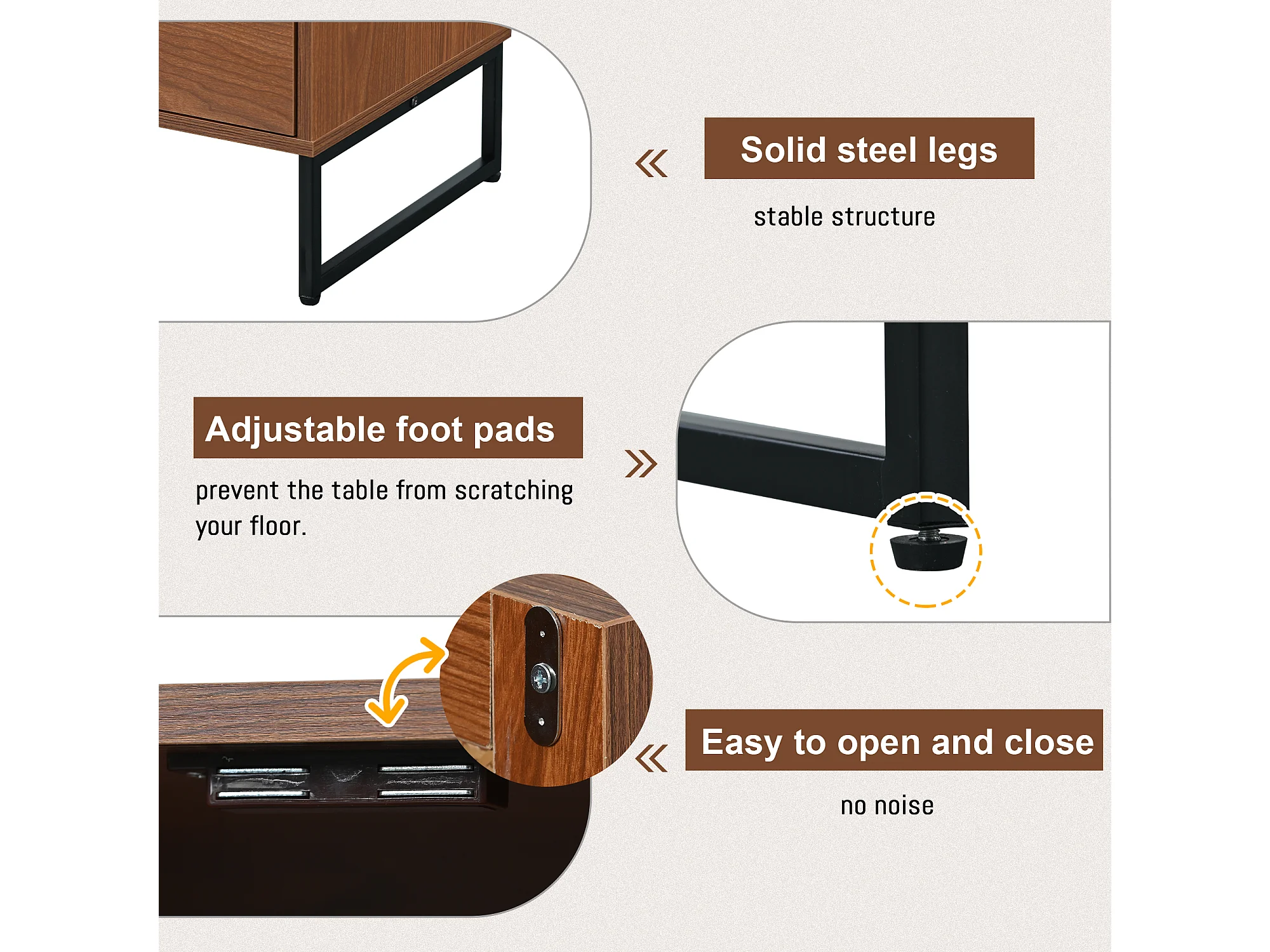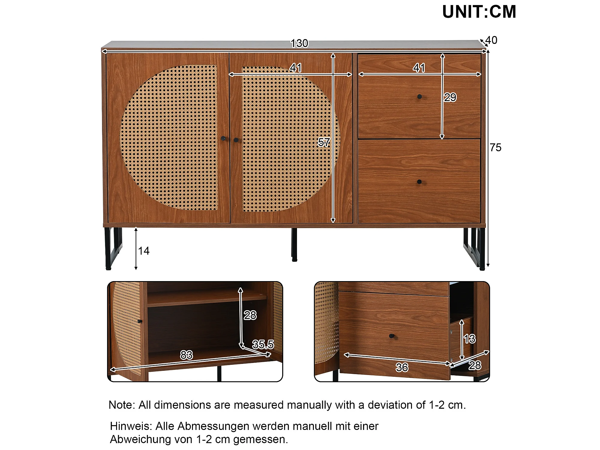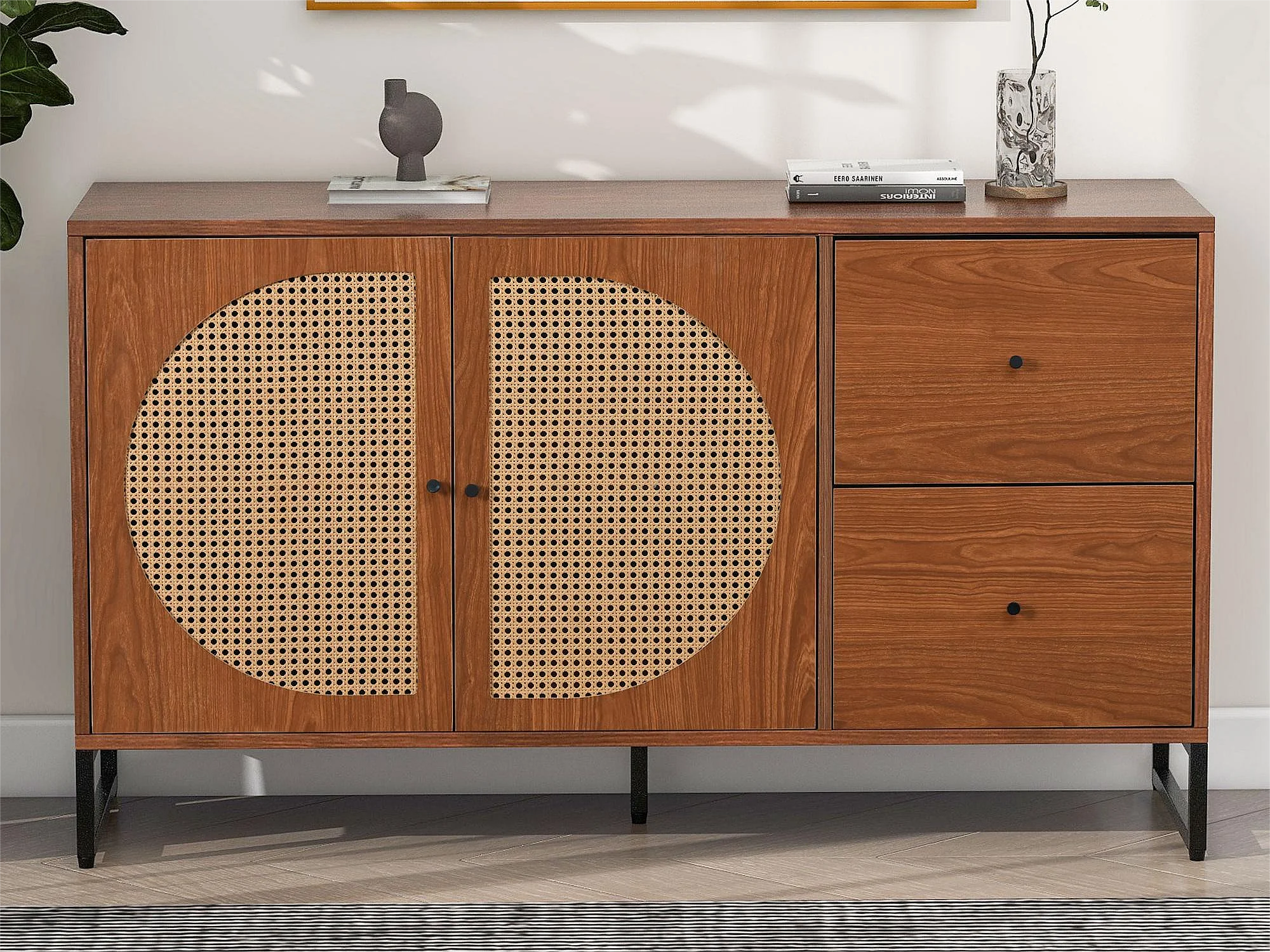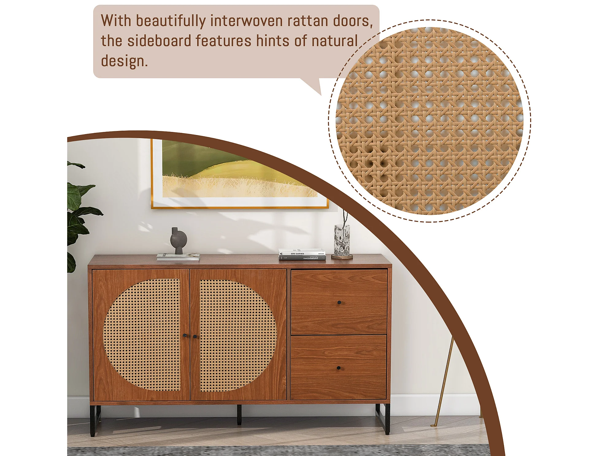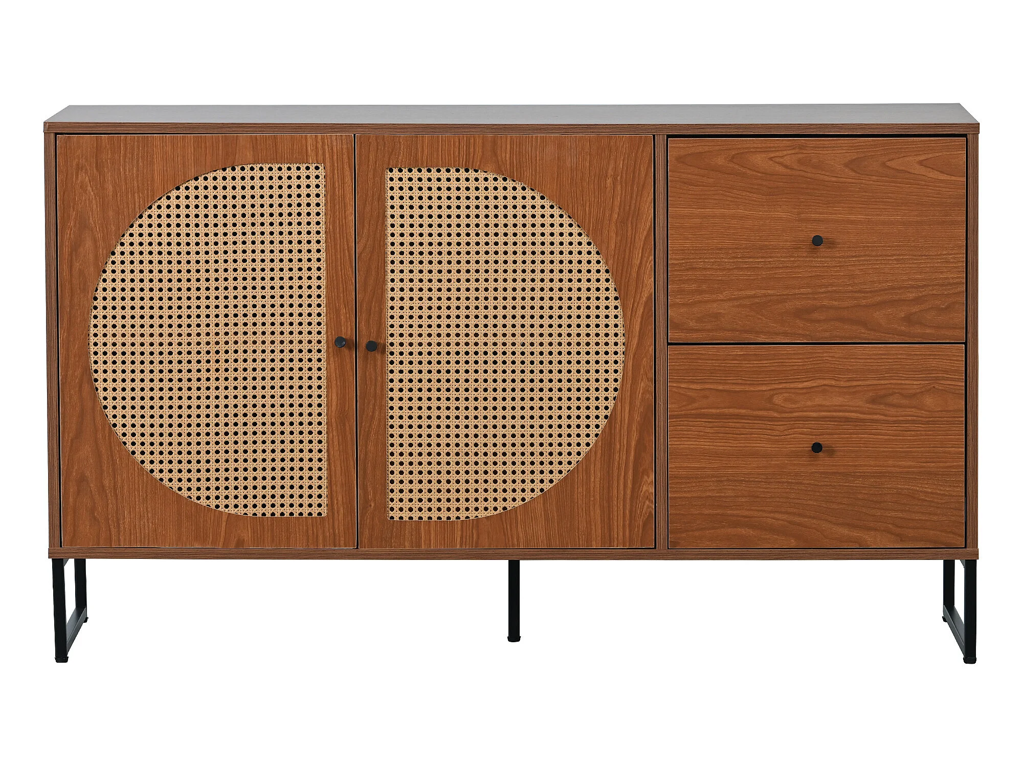 Dressoir met 2 deuren en 2 laden - spaanplaat en metaal - walnoot