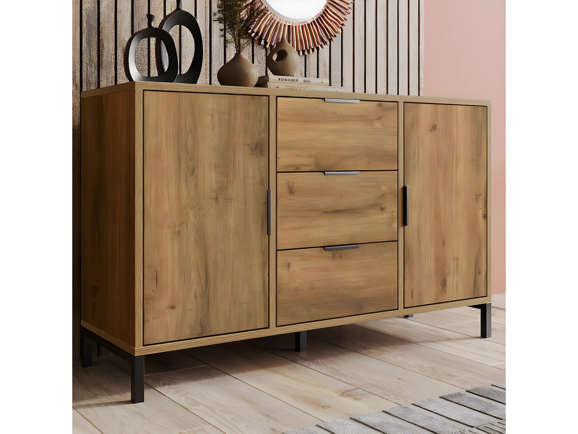 Dressoir met 2 deuren en 3 laden, 120 x 40 x 76 cm, donker eiken