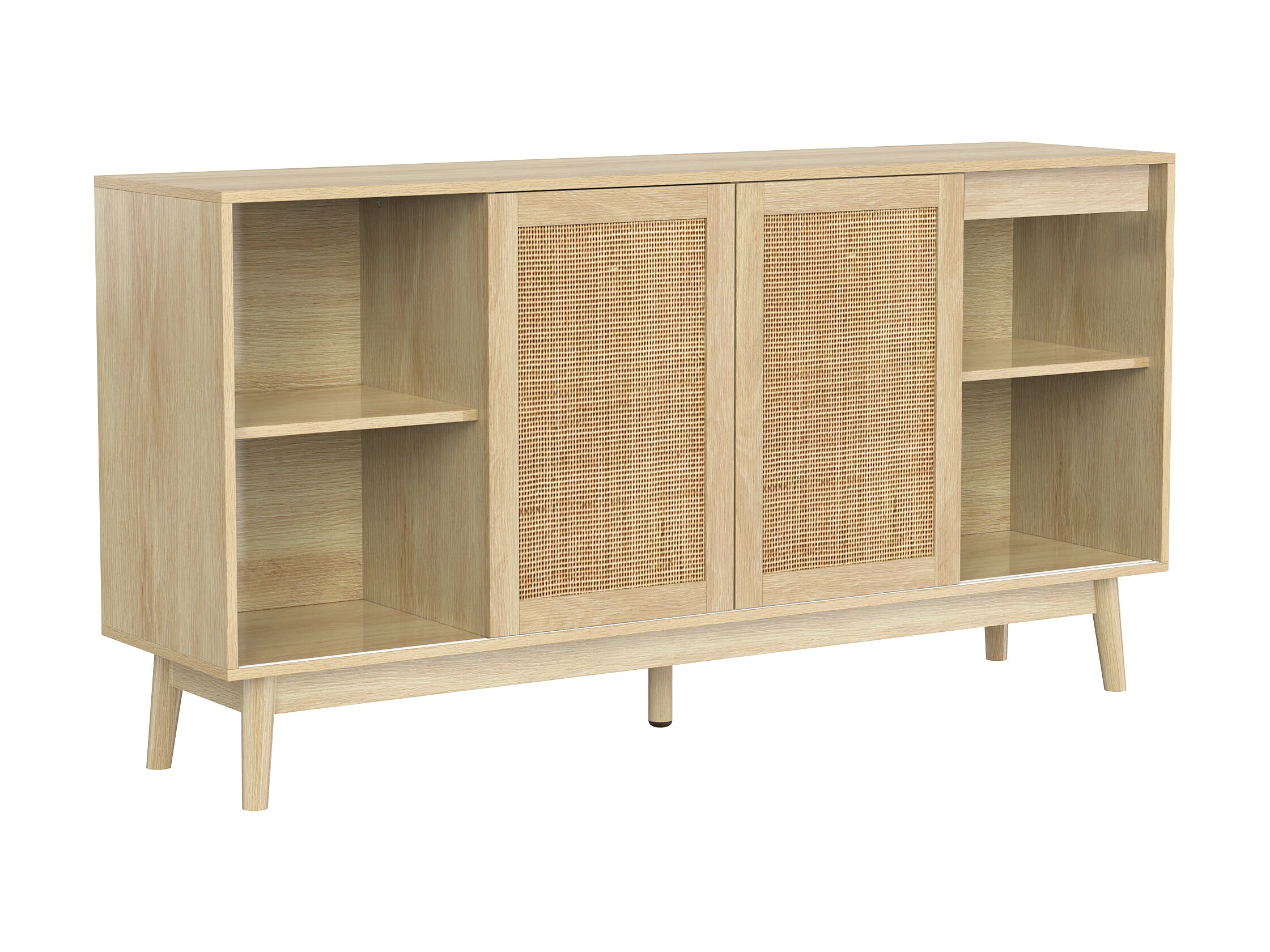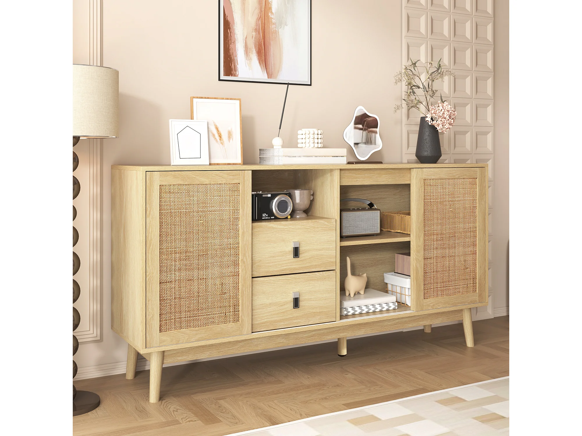 Buffetkast 155x38x80 cm, 3 schuifdeuren, 2 laden, grote opbergruimte, MDF en spaanplaat, hout