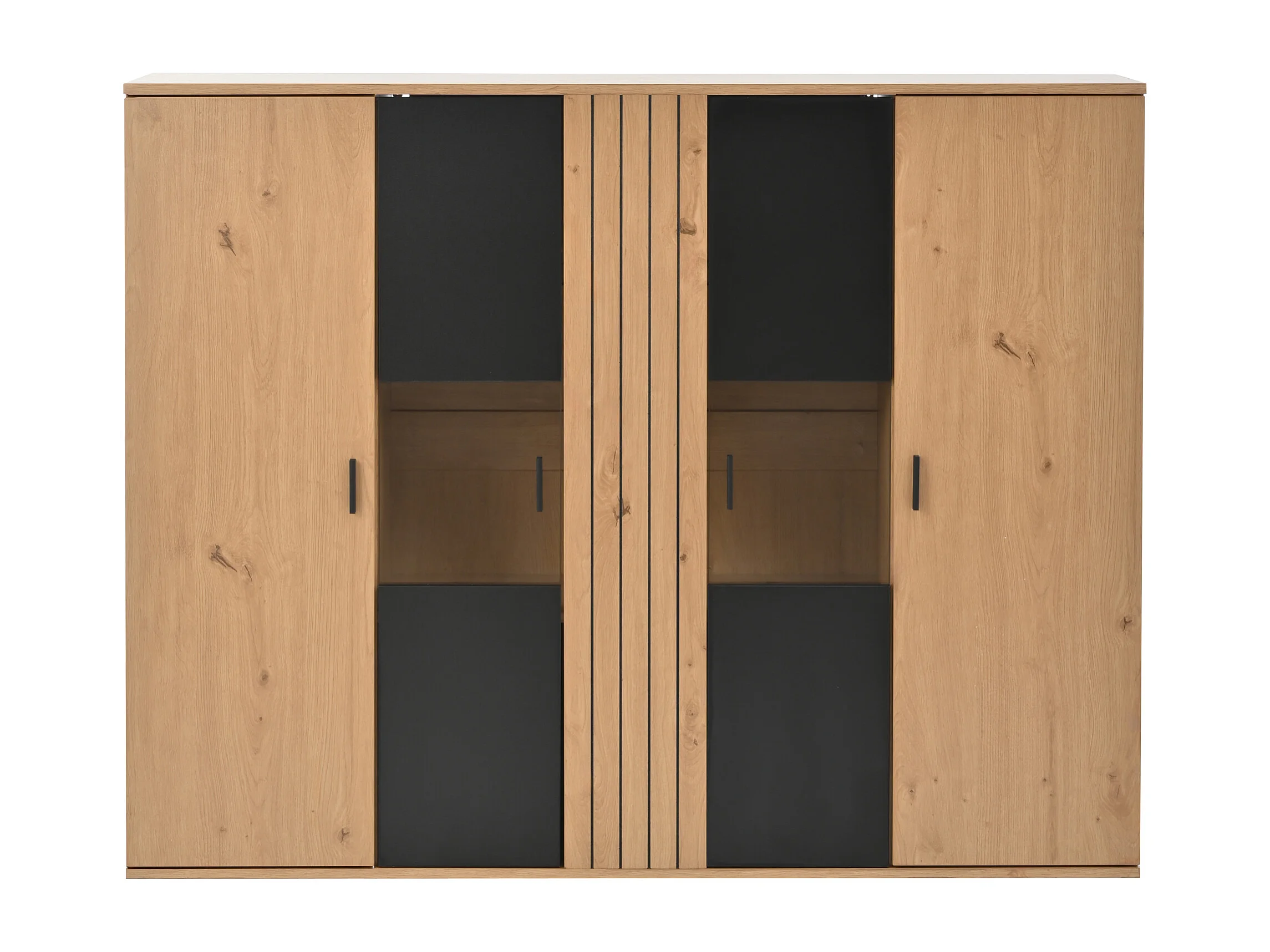 Dressoir met 4 deuren en LED-verlichting - verstelbare planken - Zwart en hout