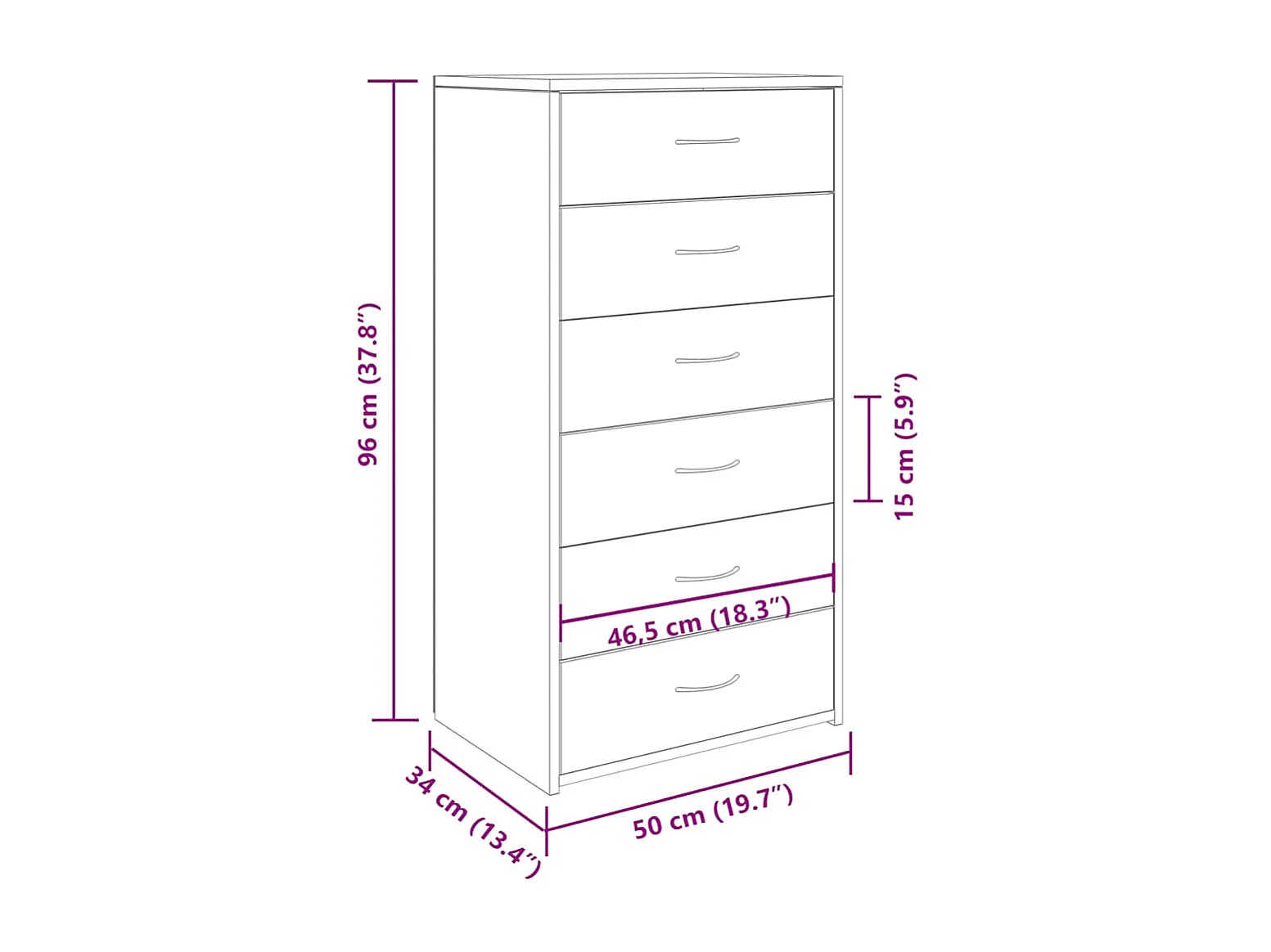 Dressoir met 6 lades 50x34x96 cm bewerkt hout oud houtkleurig