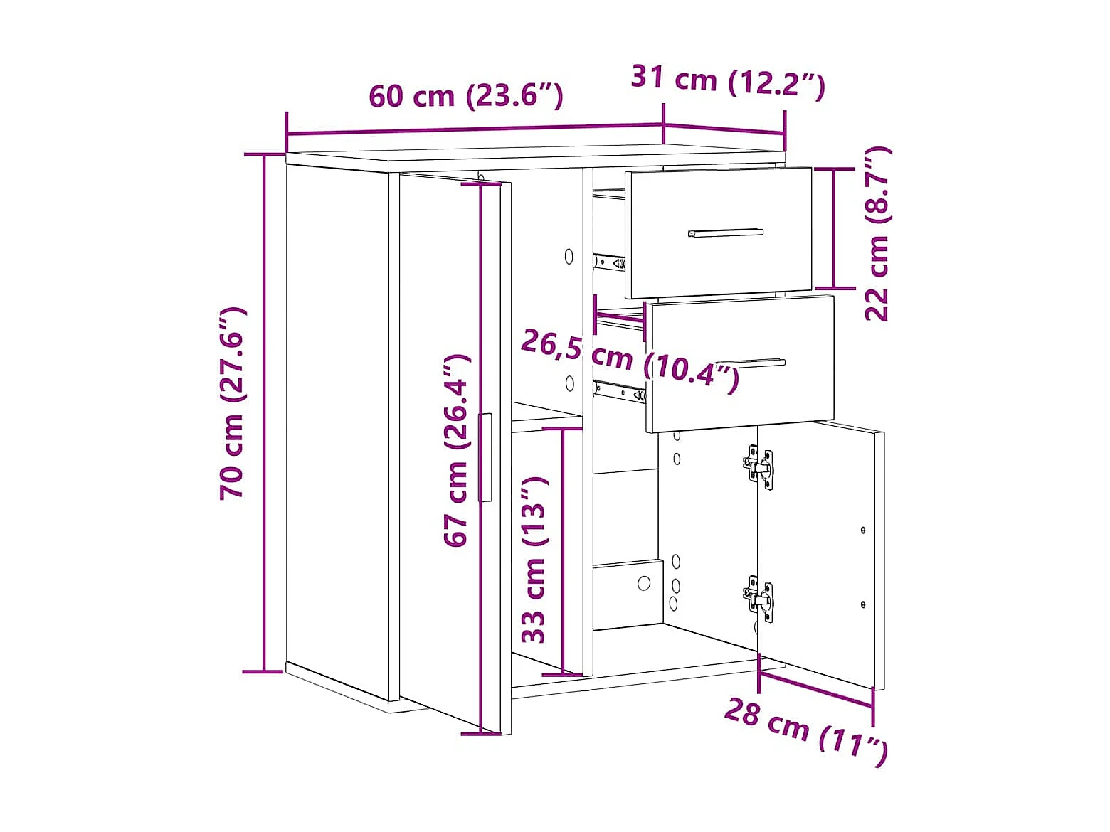 Sonoma eiken dressoir 60x31x70 cm bewerkt hout