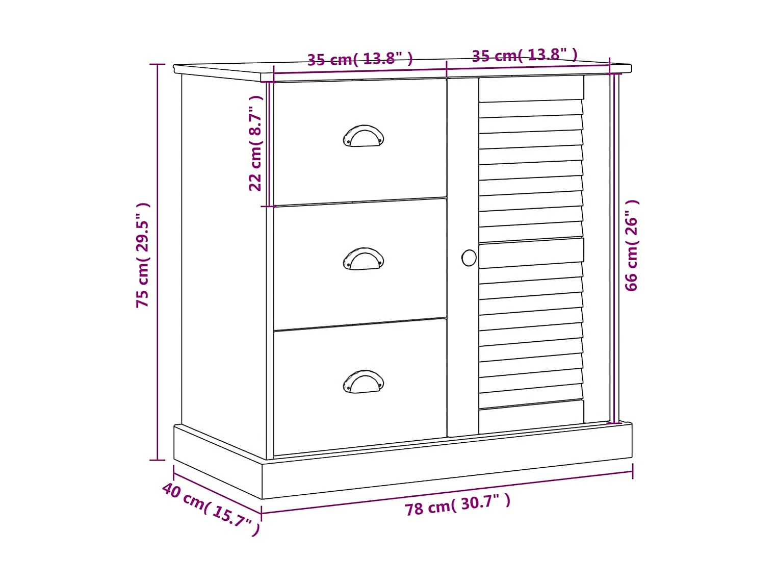 Dressoir met lades VIGO 78x40x75 cm massief grenenhout wit