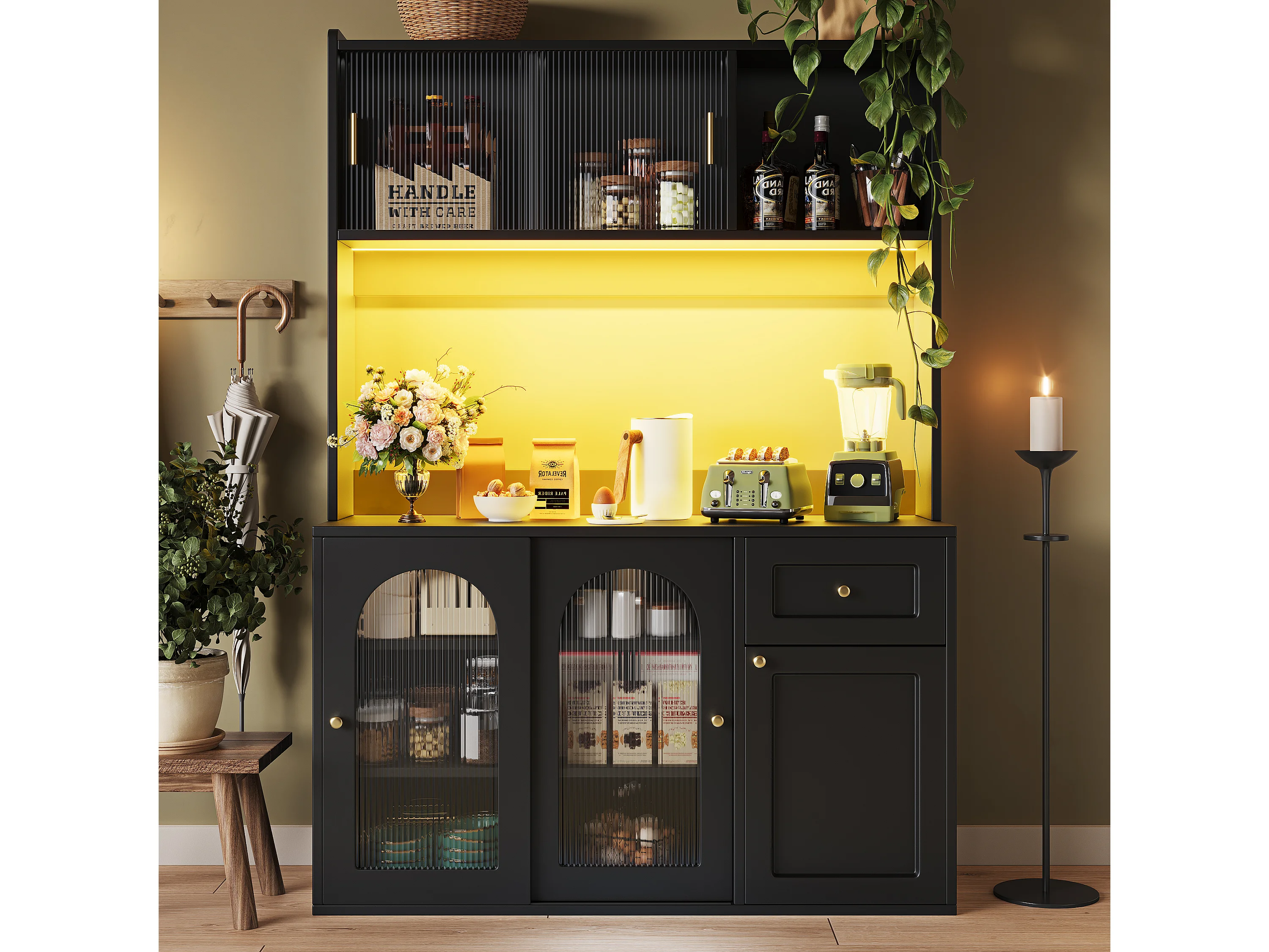 Dressoir met LED, 3 lades, verstelbare planken, MDF, zwart (120x35x167 cm)