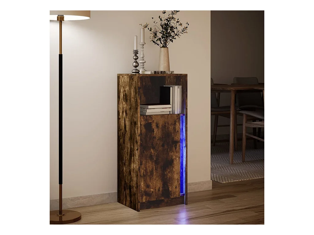 Dressoir met LED 42,5x34x100 cm bewerkt hout gerookt eikenkleur