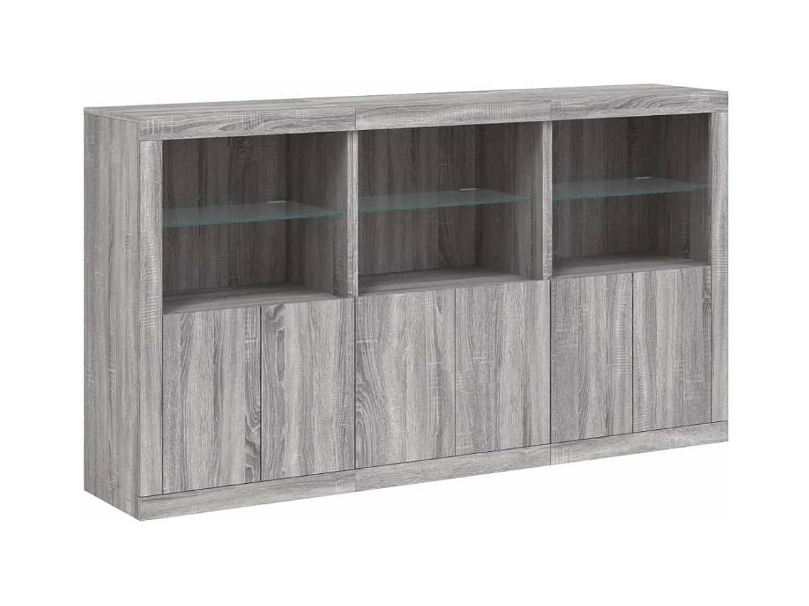 Dressoirs met LED-verlichting 3 stukkenbewerkt hout betongrijs