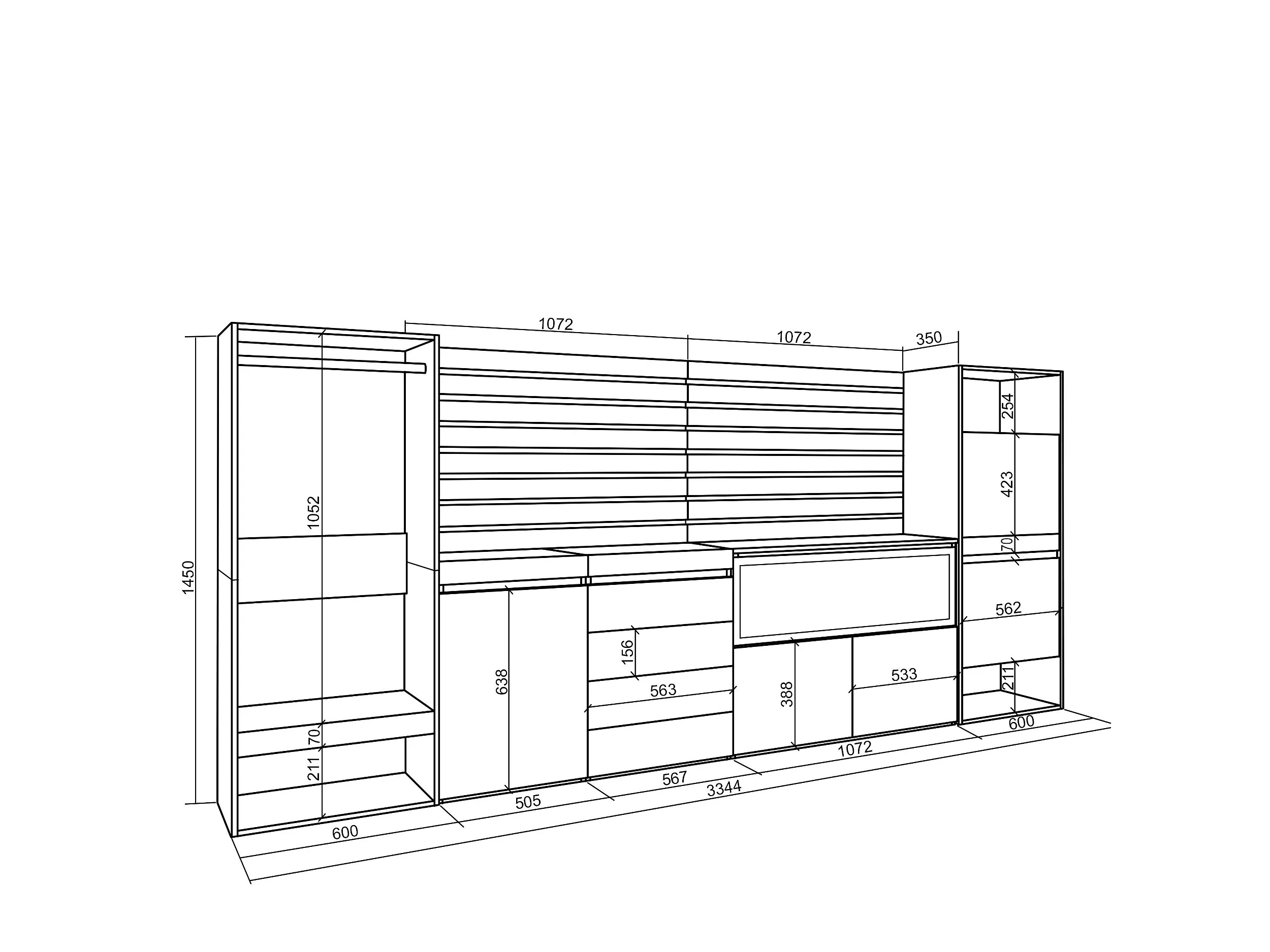 Dressoir, Opbergkast, 334x35x145cm, Voor slaapkamer, kamer, Elektrische haard XXL, Ladekast, Commode, Schoenenkast, Open Kledingkast, Wit
