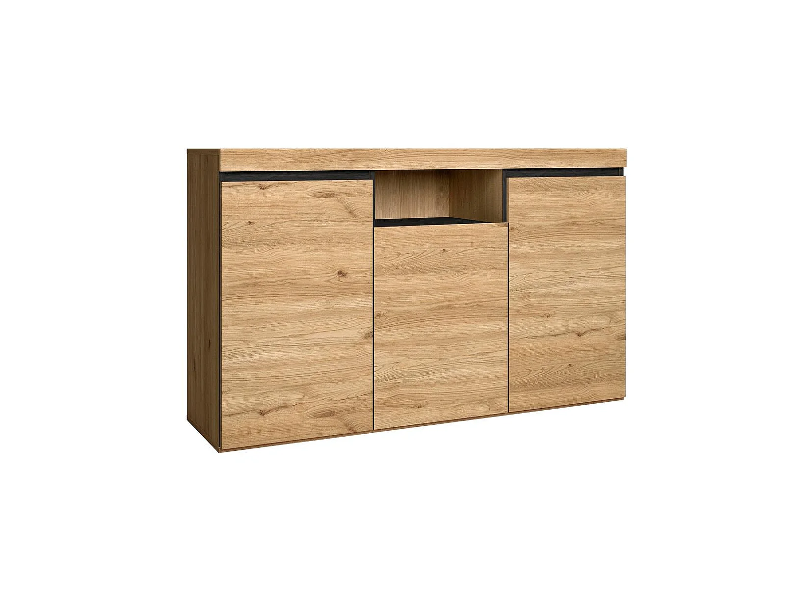 Dressoir Woonkamer Eetkamer Kantoor Kleur Eik/Zwart 3 Deuren 1 Holte 81x140x40cm
