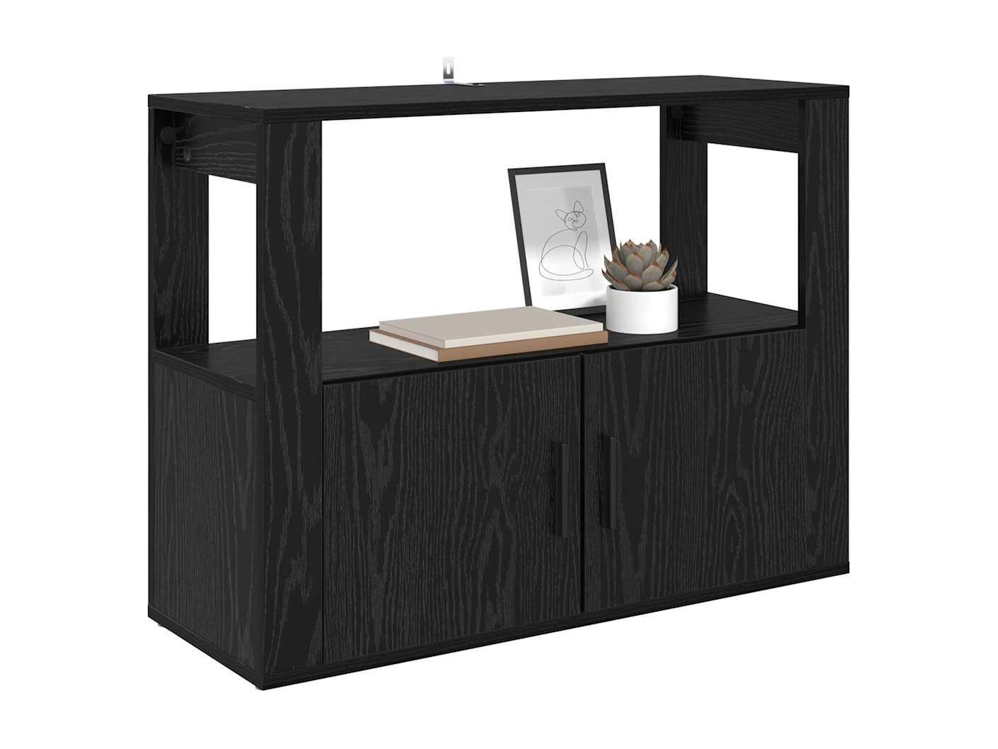 Zwarte eikenhouten dressoir 80 x 30 x 60 cm, bewerkt hout